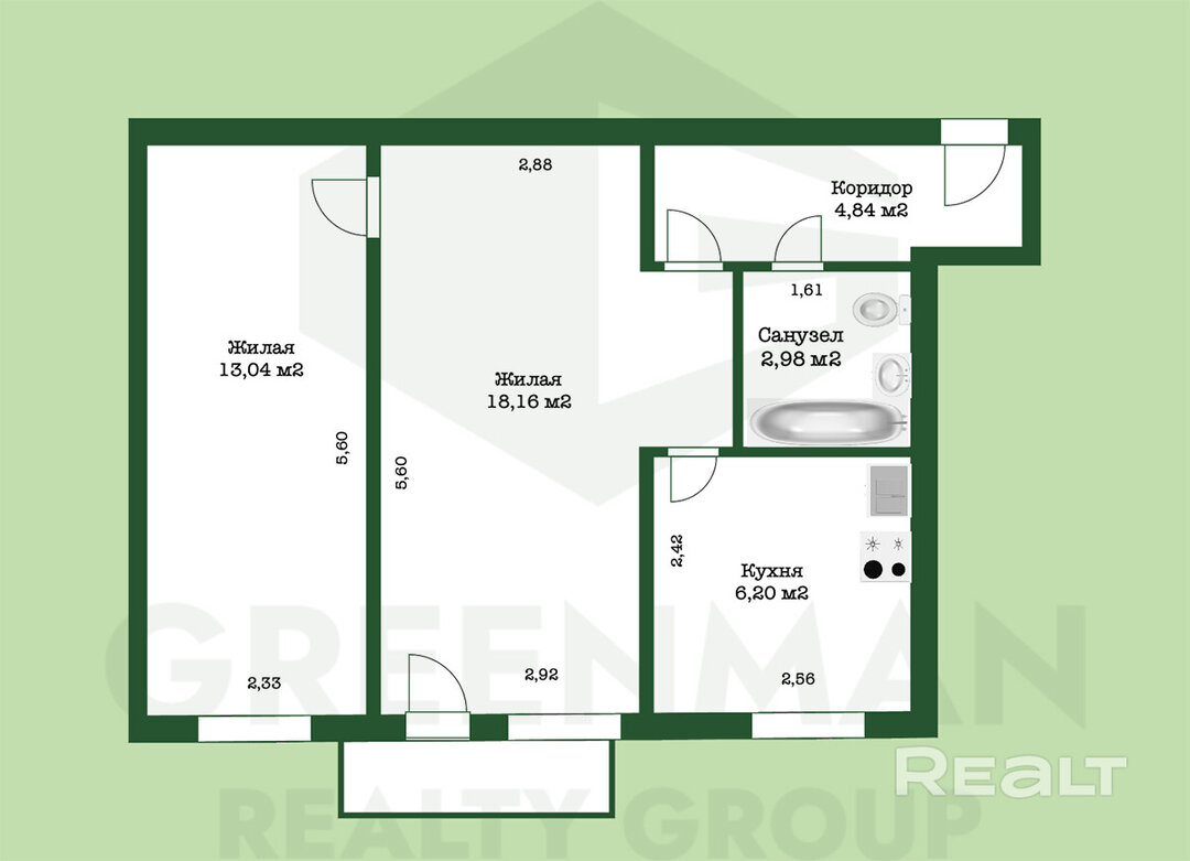 Цена метра — 1 771 доллар. Квартира стоит 66 900 долларов.