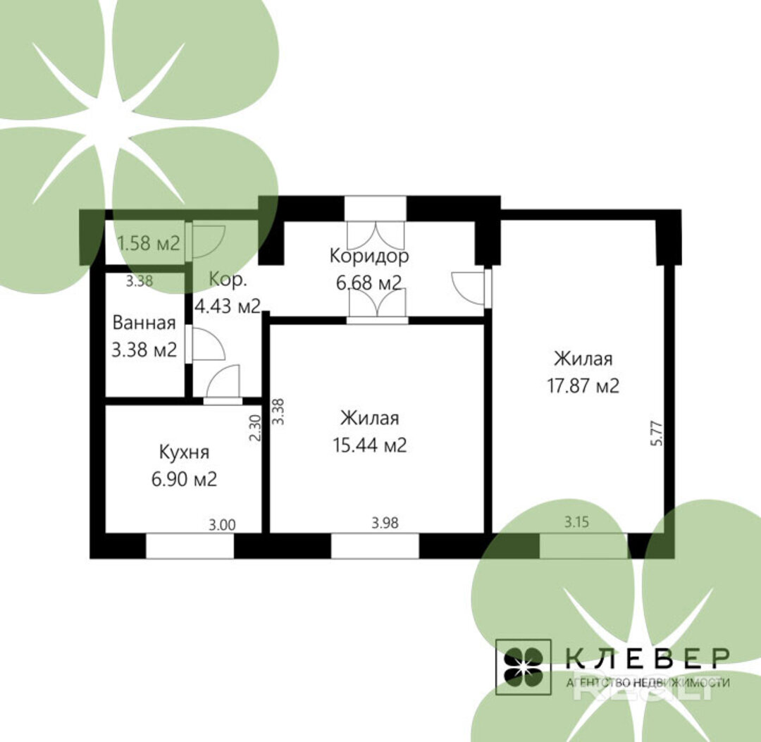 Двушка расположилась на третьем этаже пятиэтажки на Ленина, 3. Эту сталинку возвели в 1956-м в самом центре города. А в этом году здесь прошел капремонт. Квартира занимает 55,88 м², кухня — 6,9 м².