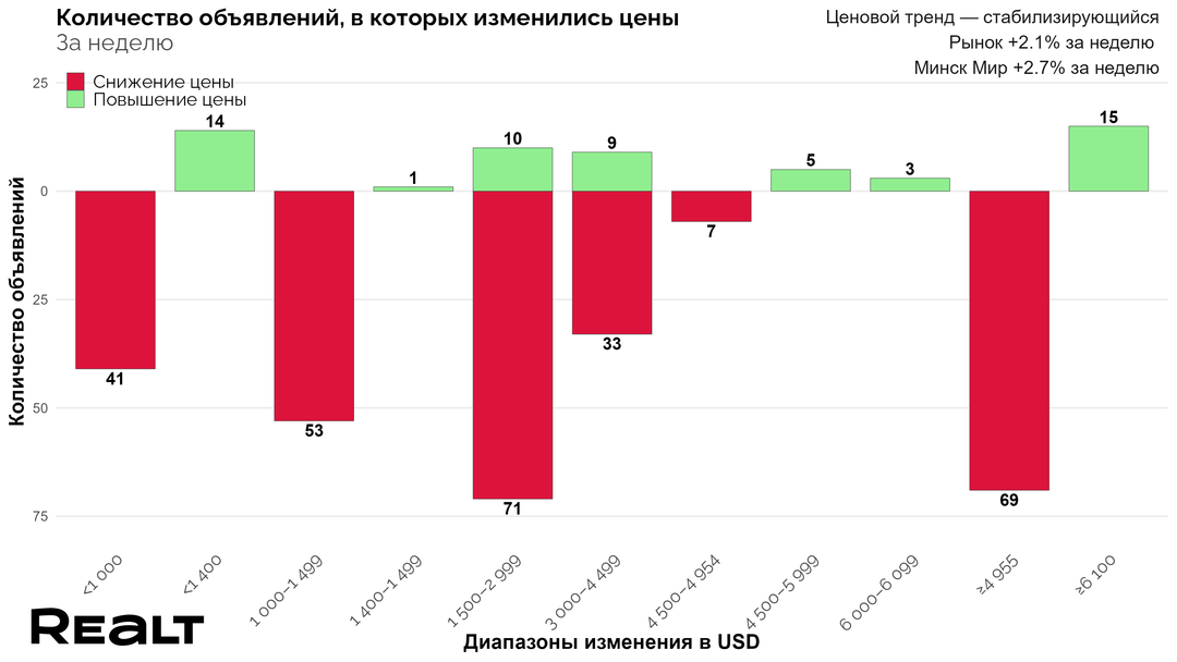 4443За последнюю неделю на вторичном рынке жилья столицы продолжается общая стабилизация цен и снижение, в частности, по Минск-Миру. Подробности и разбор причин — в аналитике Realt.