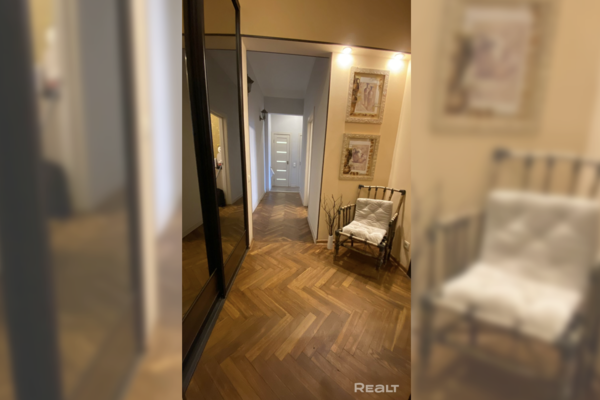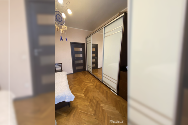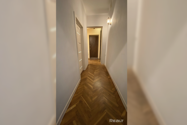 В квартире достаточно светлый ремонт. На полу паркет елочкой. Комнаты и кухня раздельные. Есть два незастекленных балкона — с выходом из спальни и кухни. Все окна выходят во двор. Санузел раздельный. Установлена душевая кабина и подключена стиральная машина.
