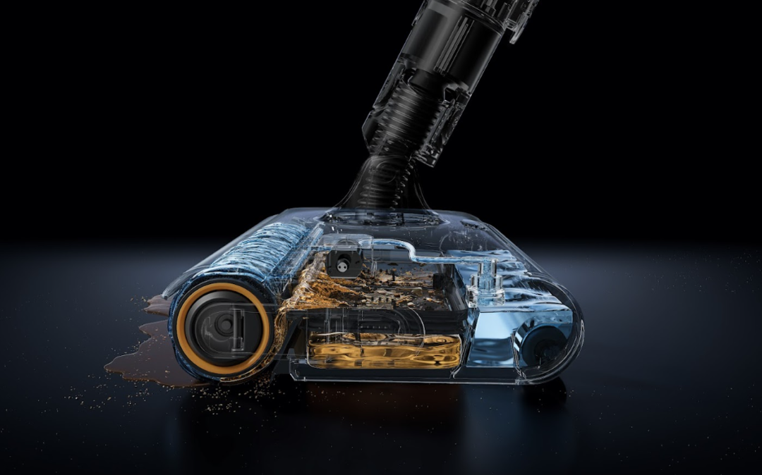 Как и в случае с роботами, интеллект в этот пылесос тоже вшит. Например, чем больше пыли или грязи, тем активнее он работает. В то же время гаджет экономит заряд там, где уровень загрязненности невысок. За счёт этого пылесос может проработать до 90 минут без подзарядки (в режиме сухой уборки). А благодаря специальной конструкции насадки-швабры (она здесь такая же, как и в предыдущей модели) можно одновременно и пылесосить, и мыть пол.