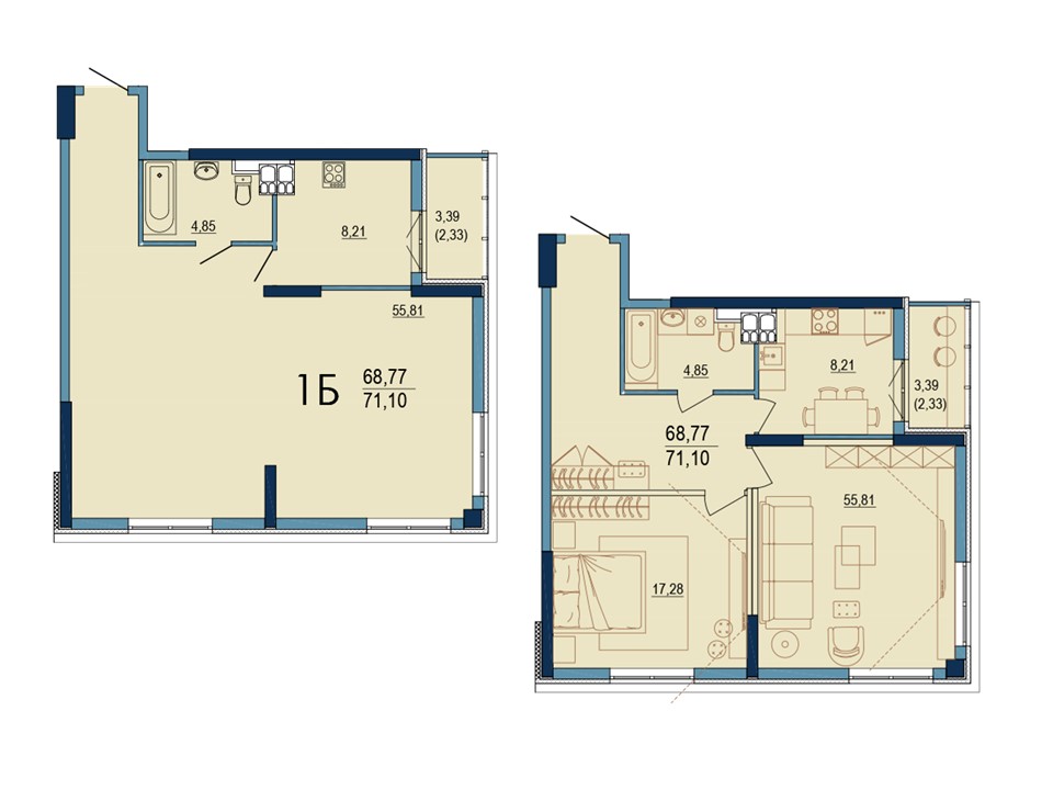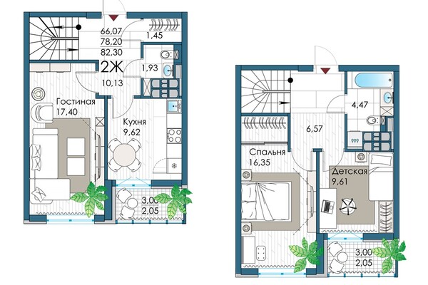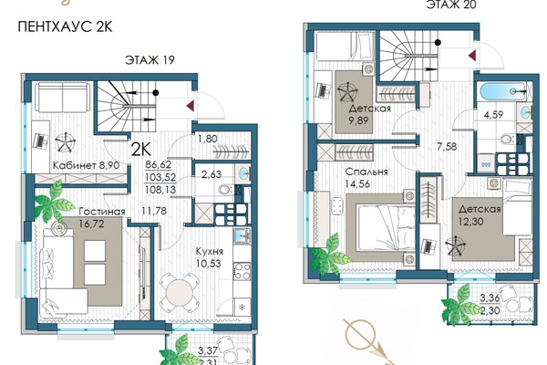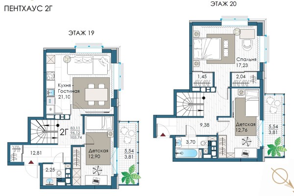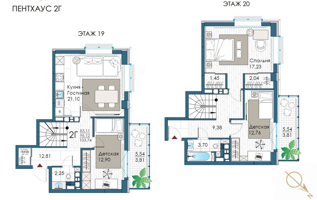 Альтернативой для тех, кто ищет по-настоящему эксклюзивное решение, выступают пентхаусы. В рамках акции представлены двухуровневые решения площадью от 80 до 121 квадратных метров по стоимости от 4830 рублей за метр квадратный. Эти апартаменты на последних этажах комплекса предлагают уникальные панорамные виды, изолированность от шума и возможность создать уникальное решение в самом сердце города.