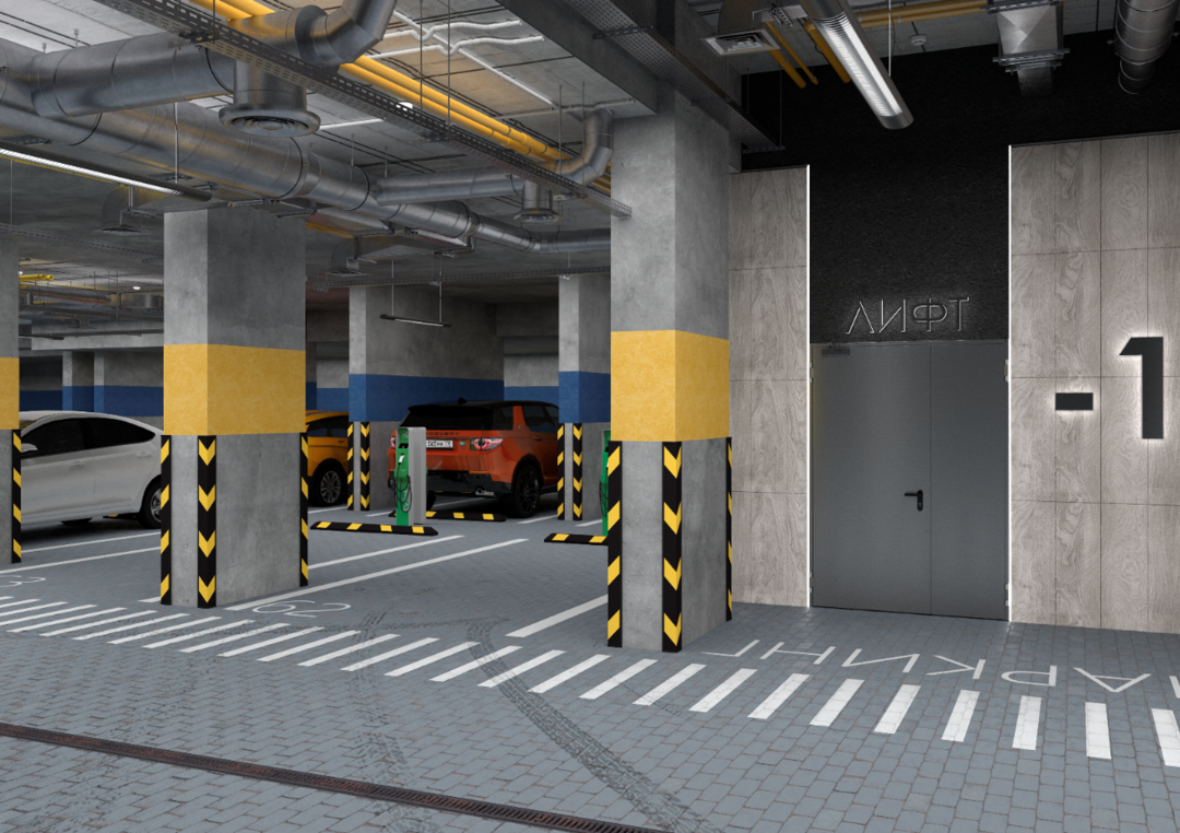 Подземный паркинг на 277 машино-мест, который станет одним из ключевых преимуществ комплекса, также находится на стадии активной внутренней отделки. В нем монтируются системы вентиляции, дымоудаления и ведутся отделочные работы.
