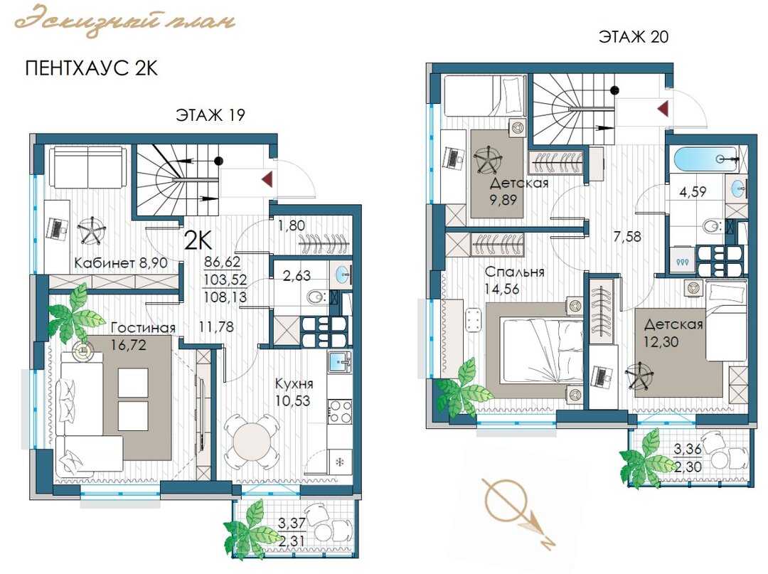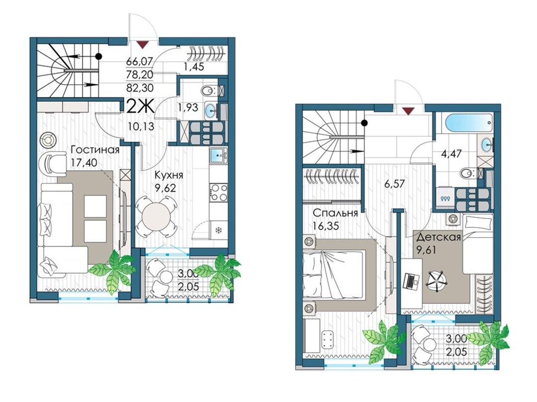 Альтернативой для тех, кто ищет по-настоящему эксклюзивное решение, выступают пентхаусы. В рамках акции представлены двухуровневые решения площадью от 80 до 121 квадратных метров по стоимости от 4830 рублей за метр квадратный. Эти апартаменты на последних этажах комплекса предлагают уникальные панорамные виды, изолированность от шума и возможность создать уникальное решение в самом сердце города.