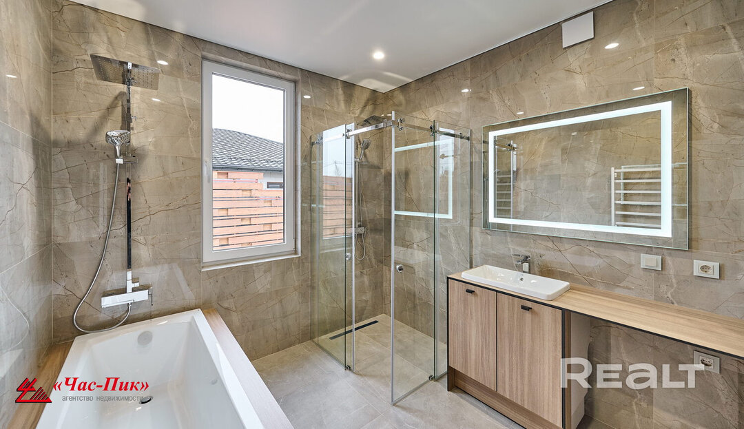 Вентиляция в доме приточно-вытяжная, рекуператором, которая обеспечивает постоянный приток свежего воздуха без потерь тепла. Установлены сплит-системы в гостиной и мастер-спальне с возможностью как охлаждения, так и обогрева.