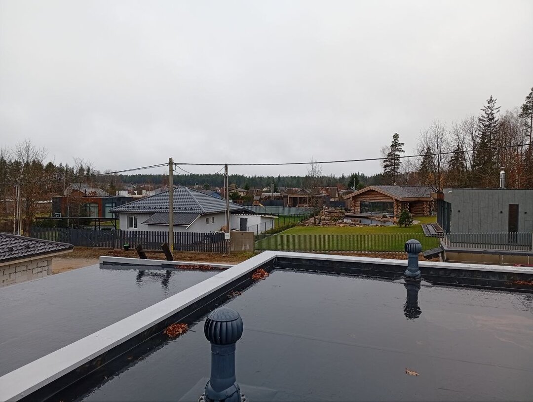 Для плоской крыши использовалась и сверхнадежная кровля — мембрана Firestone. Это дорогое, но долговечное решение с гарантией до 50 лет, которое позволяет настелить крышу бесшовно.