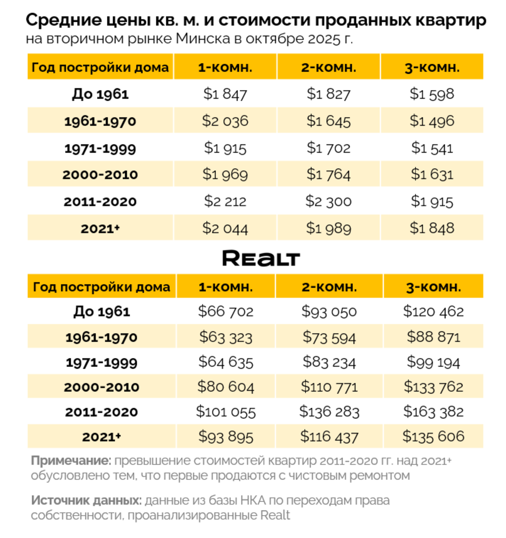 Ожидаемо выросла и стоимость проданных квартир на 3% - до 95 000 $ с 92 000 $ в августе. Причем во многом благодаря двухкомнатным квартирам в домах 2011−2020 г. п.