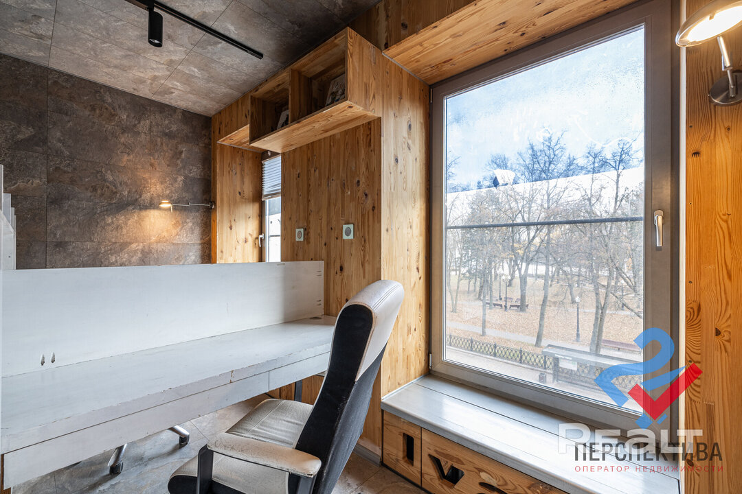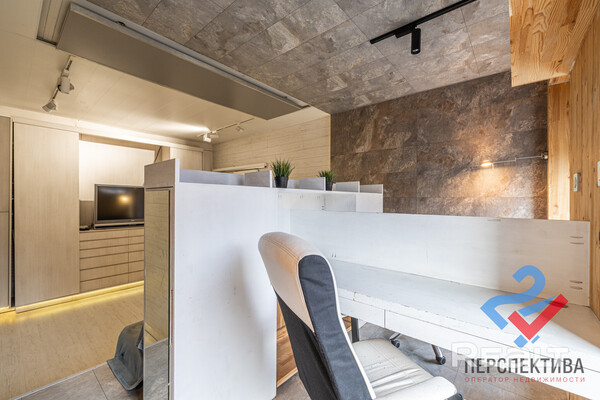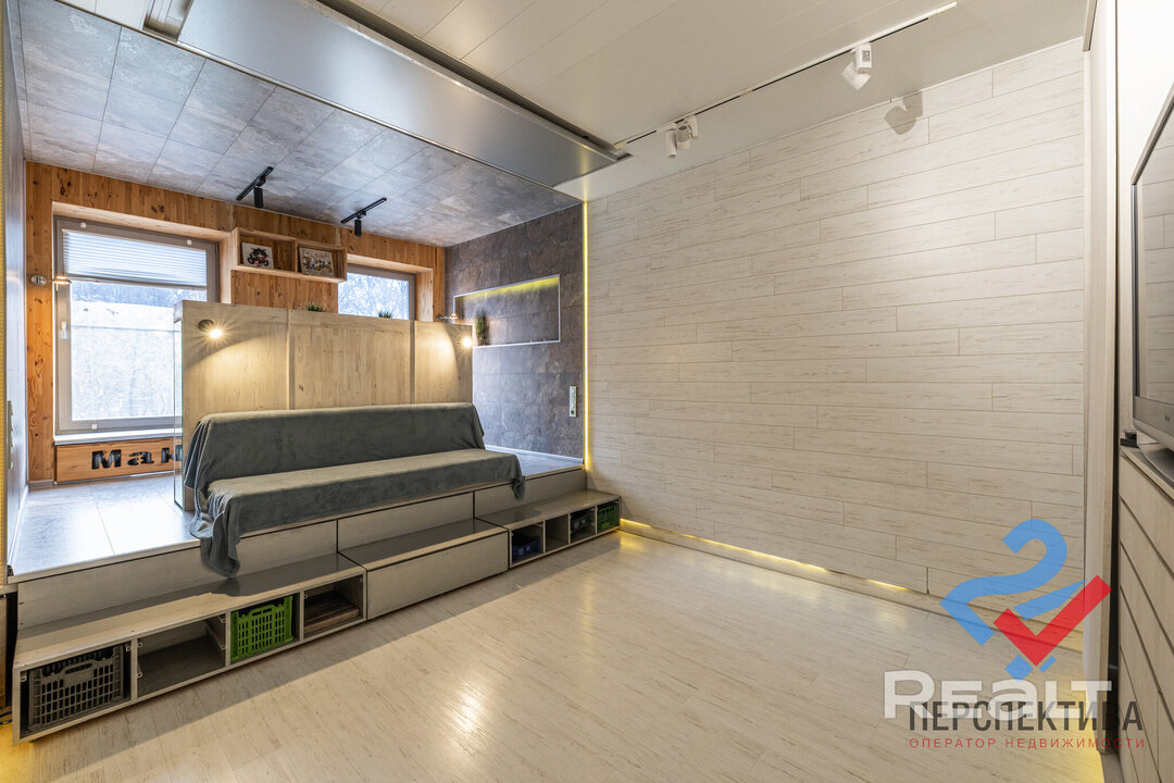 Продавец говорит, что в квартире дизайнерский ремонт. Выглядит она нестандартно. Вся мебель, по словам продавца, трансформируется. Например, один из столов-трансформеров, оборудован на тросах. Вот как выглядит интерьер в жилых комнатах. В одной есть выход на балкон.