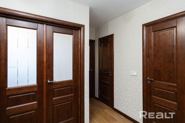 Квартира выглядит аккуратной: светлые стены, на полу лежит теплый оттенок ламината. Владельцы готовы оставить мебель, но по желанию покупателя она может быть вывезена. Пространства получились просторными. В коридоре можно организовать несколько зон для хранения вещей. Из кухни имеется выход на застекленный балкон.