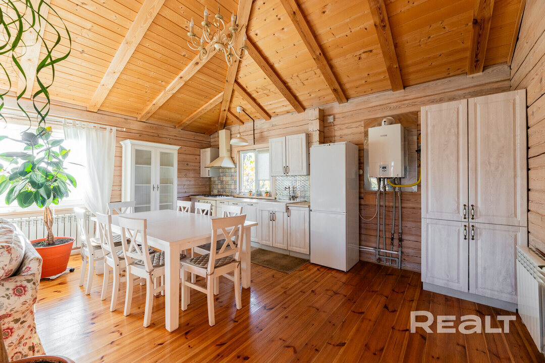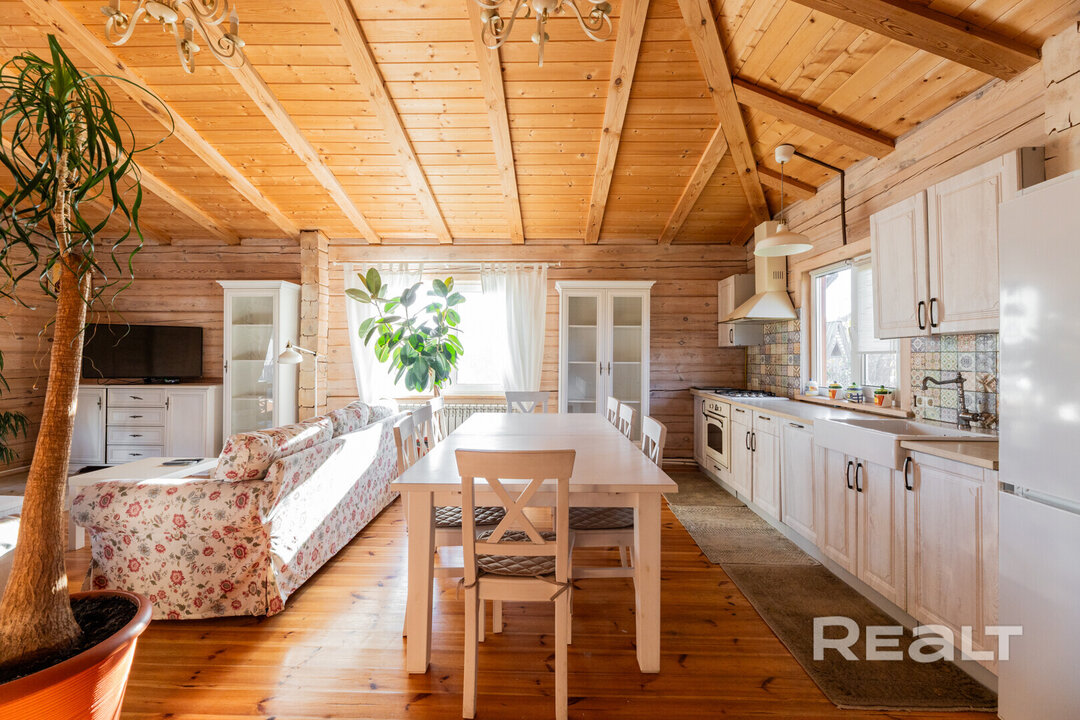 18023Недалеко от Минска выставлен на продажу красивый деревянный дом с уютным интерьером и террасой. Несмотря на то, что он находится в СТ, жить в нем можно круглогодично. Приятным бонусом станет наличие еще одной жилой постройки на участке. Это дом для гостей. Он аутентичнее своего молодого соседа. Посмотрите, как они выглядят. За все просят 175 тысяч долларов.