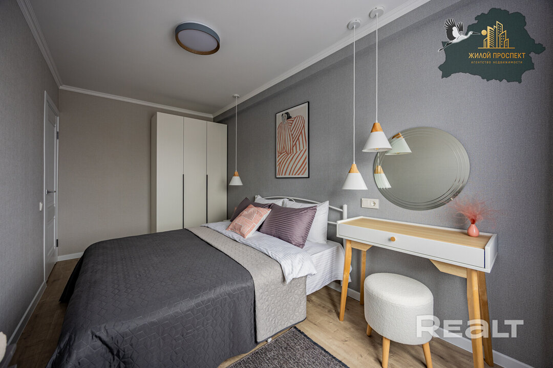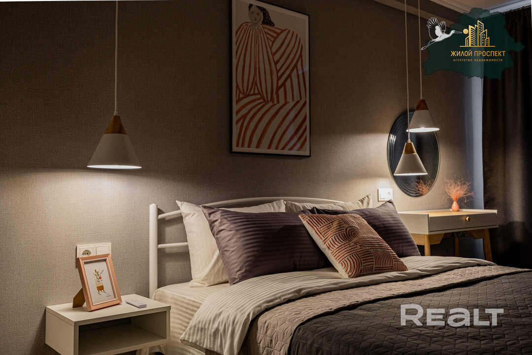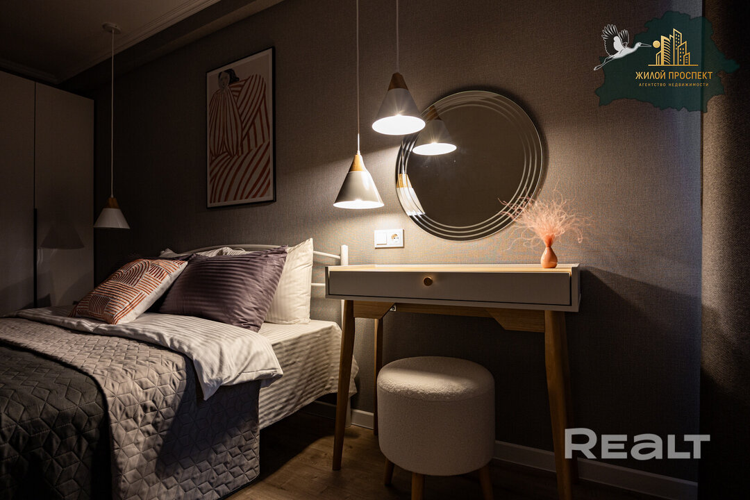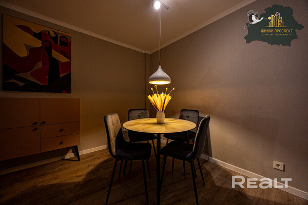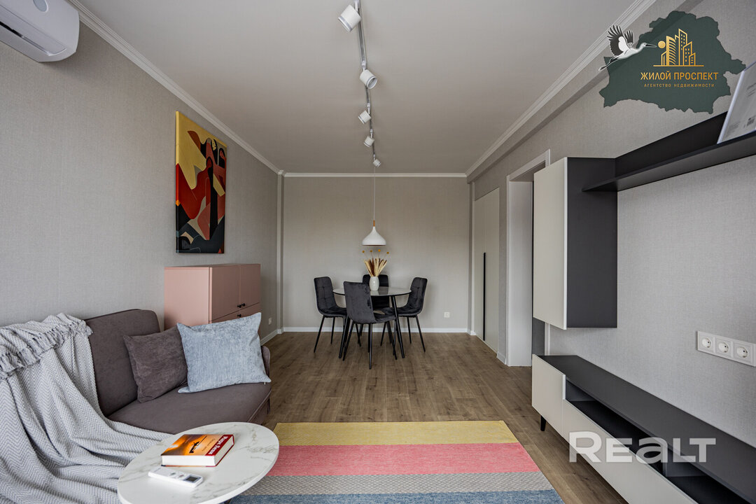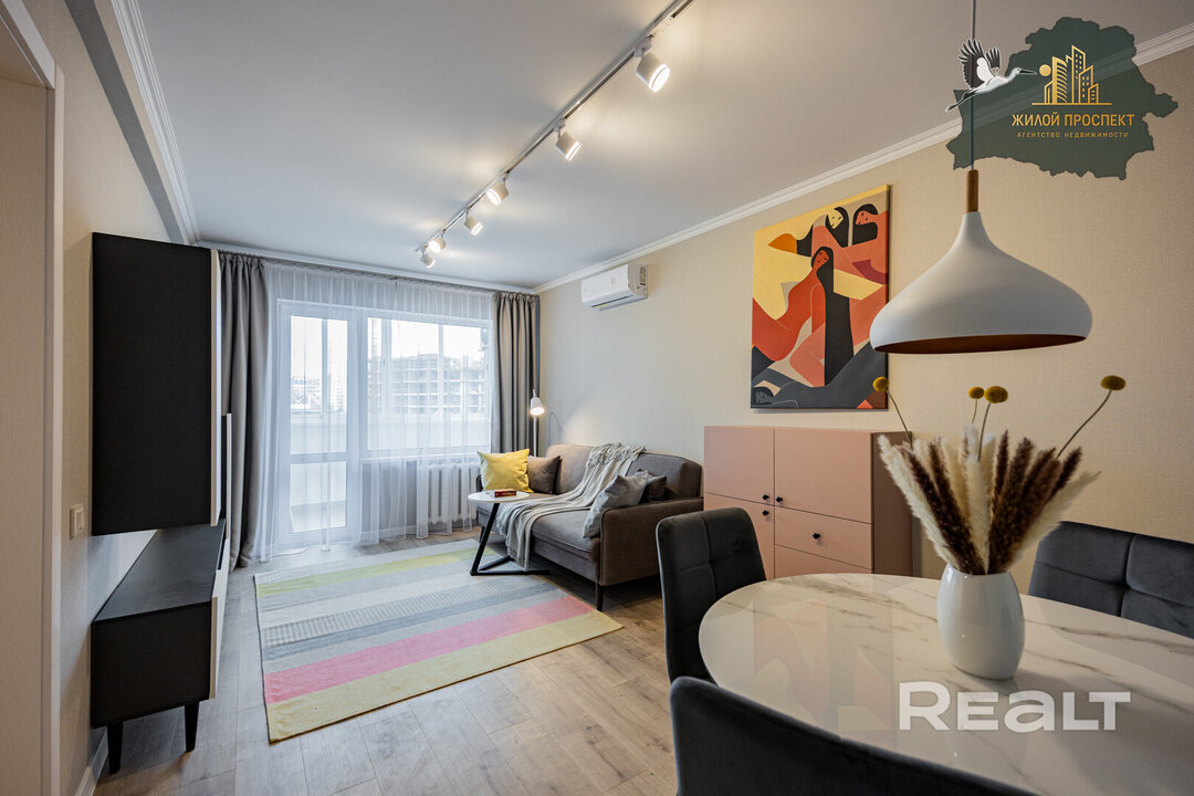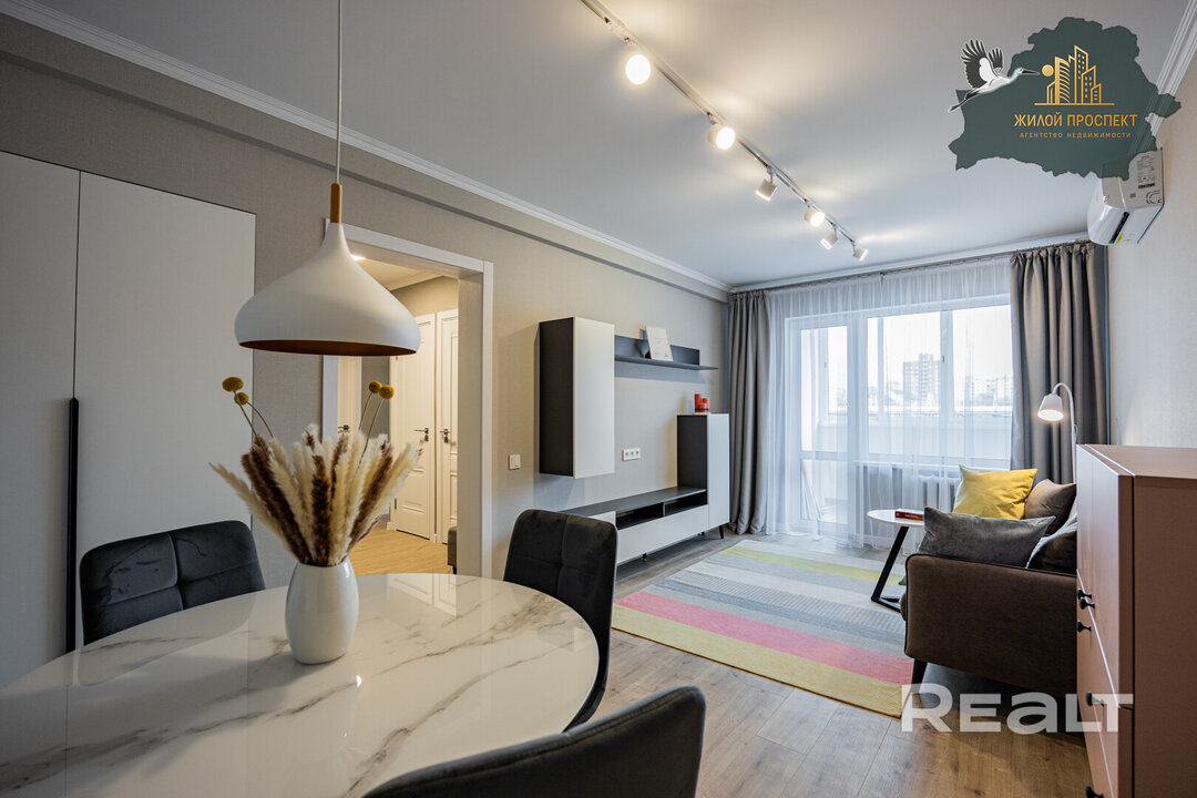 17801В девятиэтажке, что стоит у станции метро в Минске, продается красивая двухкомнатная квартира. Здесь сделан стильный ремонт, обустроены полноценные зоны, такие как кухня, гостиная, столовая и отдельная спальня. Сколько стоит жилье? Если что, квартиру можно купить в лизинг — бесплатная консультация вот тут.
