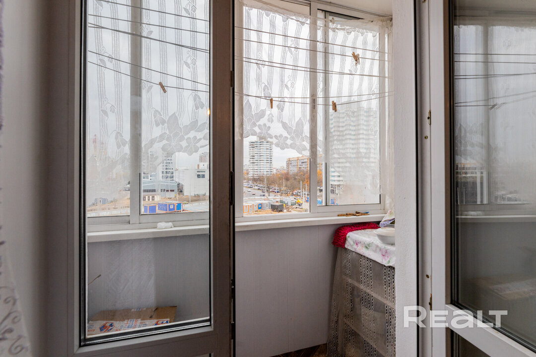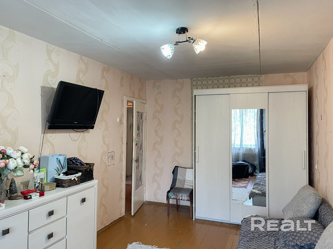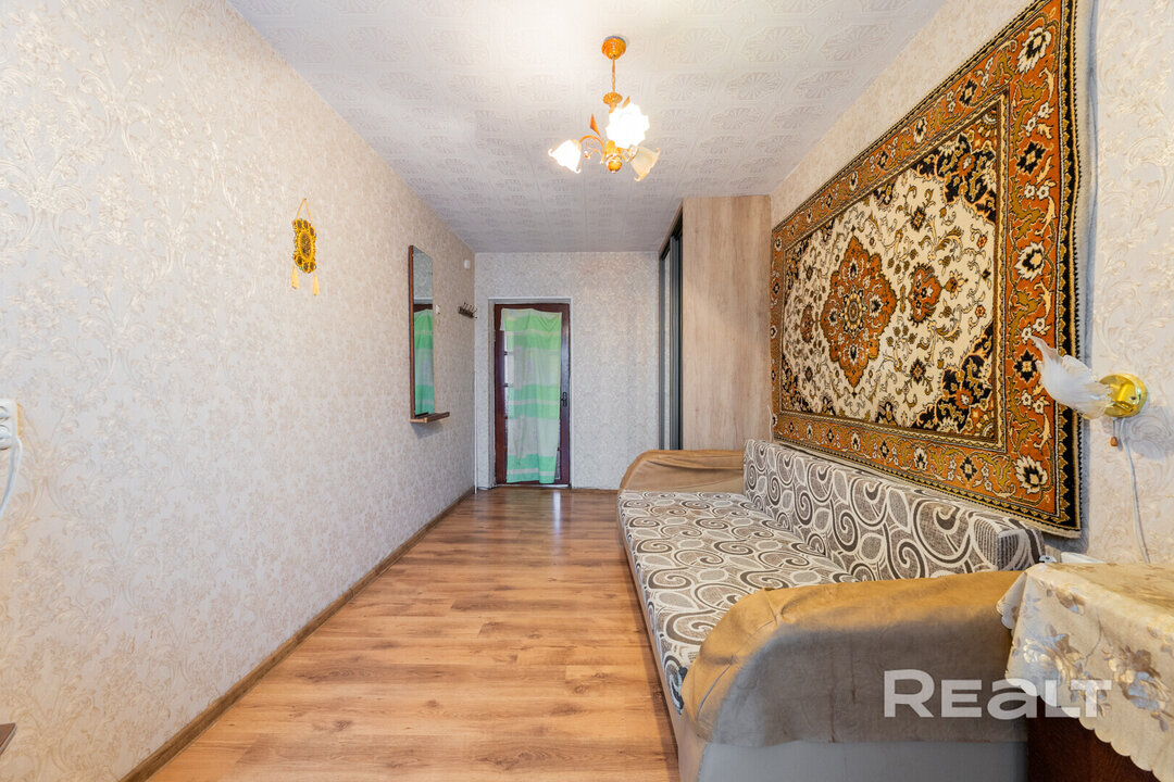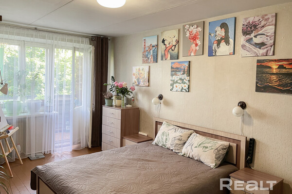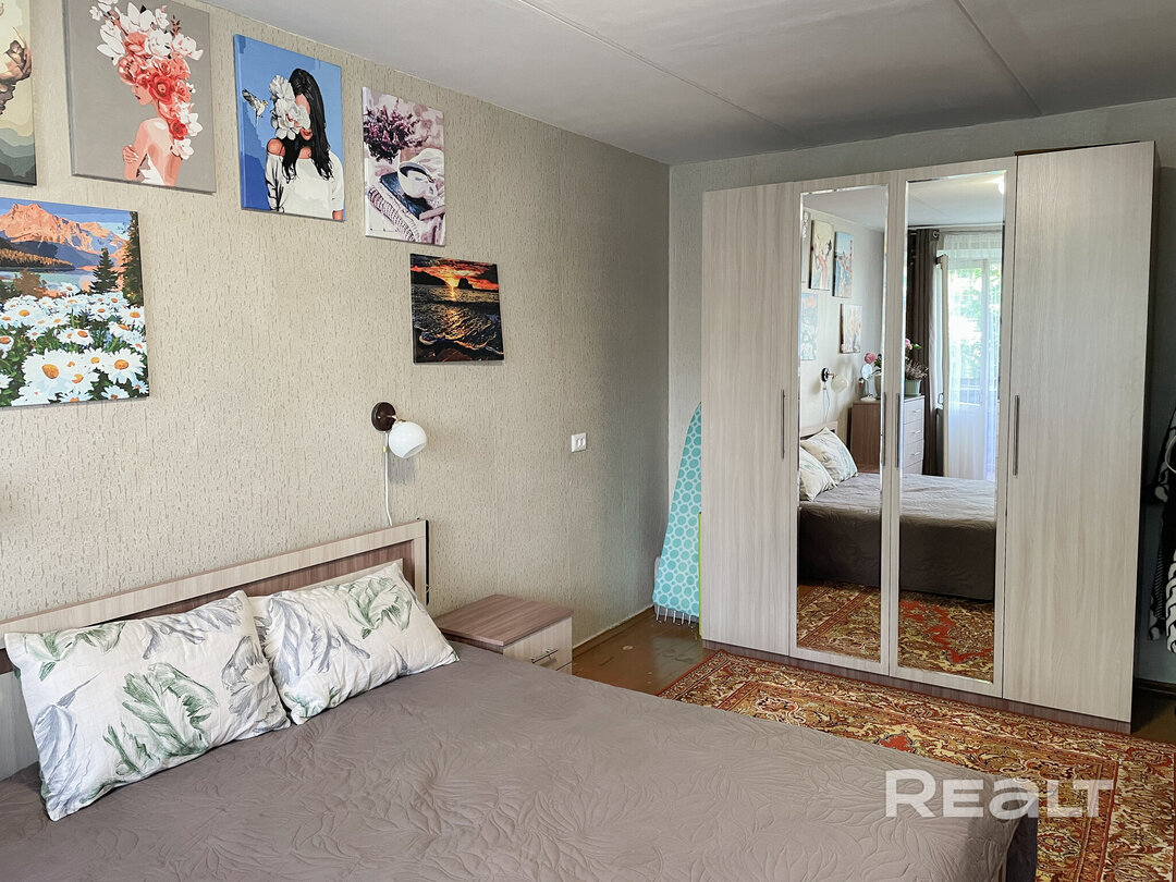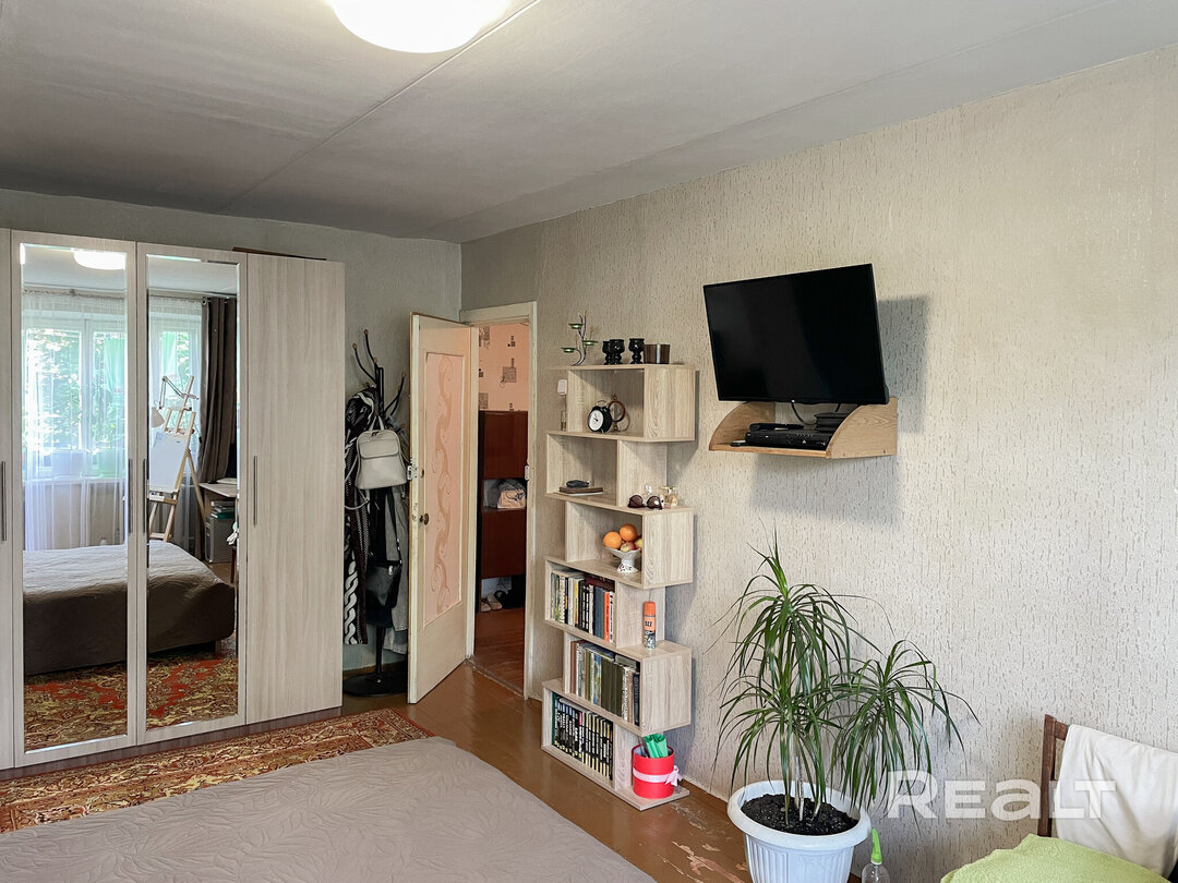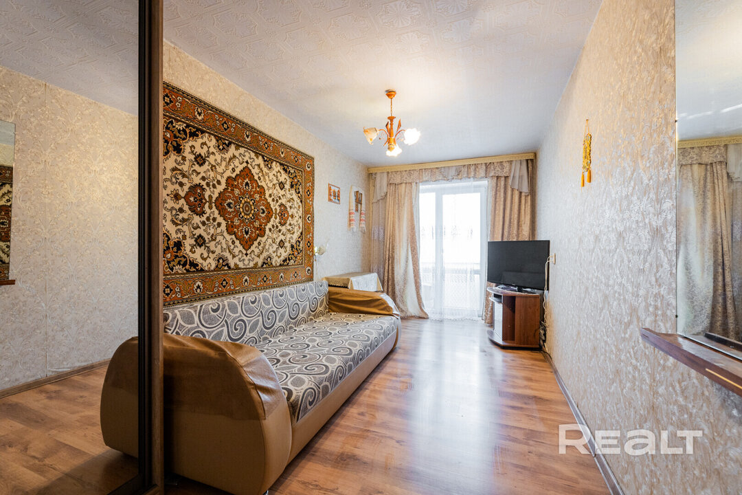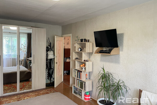 В квартире остается мебель. Планировка предусматривает несколько ниш для хранения вещей. Из комнаты имеется выход на застекленный балкон.