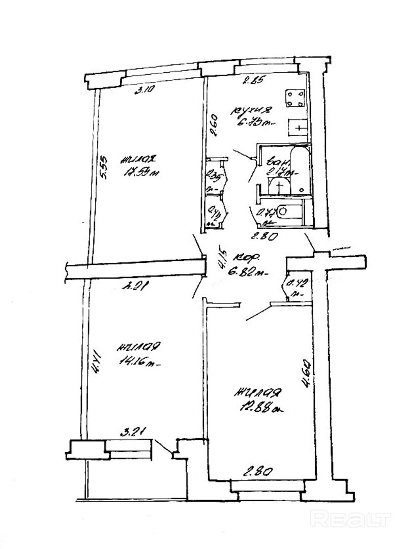 В этой квартире можно обустроить стильную кухню. Как насчет встроенной посудомоечной машины? На сайте Newton.by есть решения. Например, посудомоечная машина Bosch Serie 4 SPV4HMX10E, в которую можно загрузить до 10 комплектов посуды. Электронный режим управления, шесть программ: вы и сбережете ценный хрусталь, и тщательно отмоете сковороду.