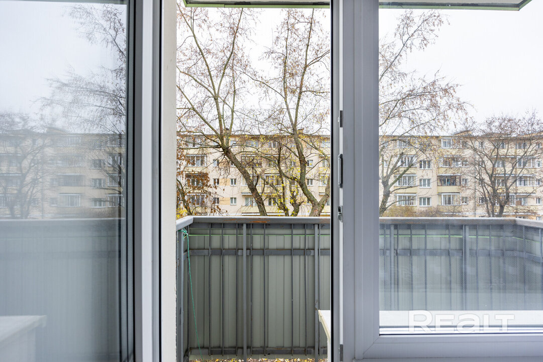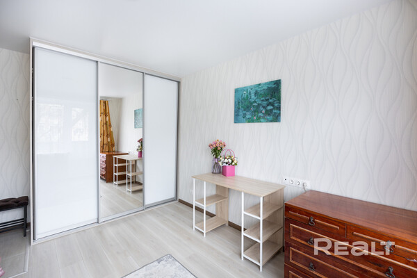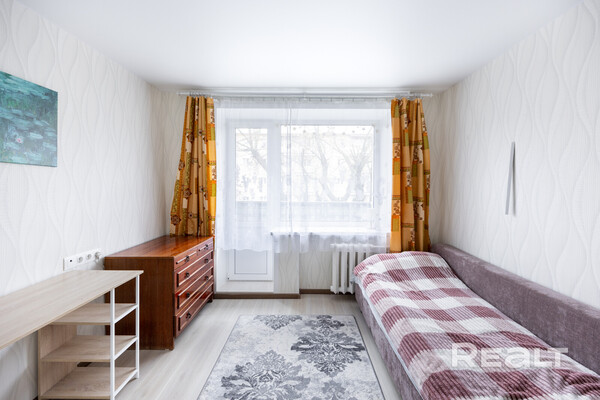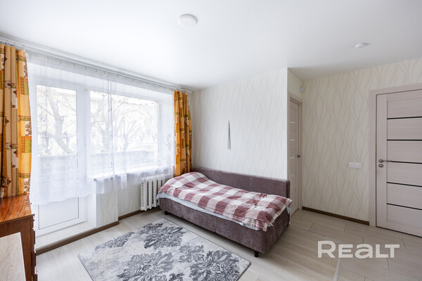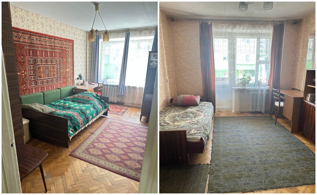 В квартире две отдельные комнаты, но при желании можно легко изолировать все. На полу тут лежат линолеум и ламинат. Окна выходят на обе стороны, стоят стеклопакеты.