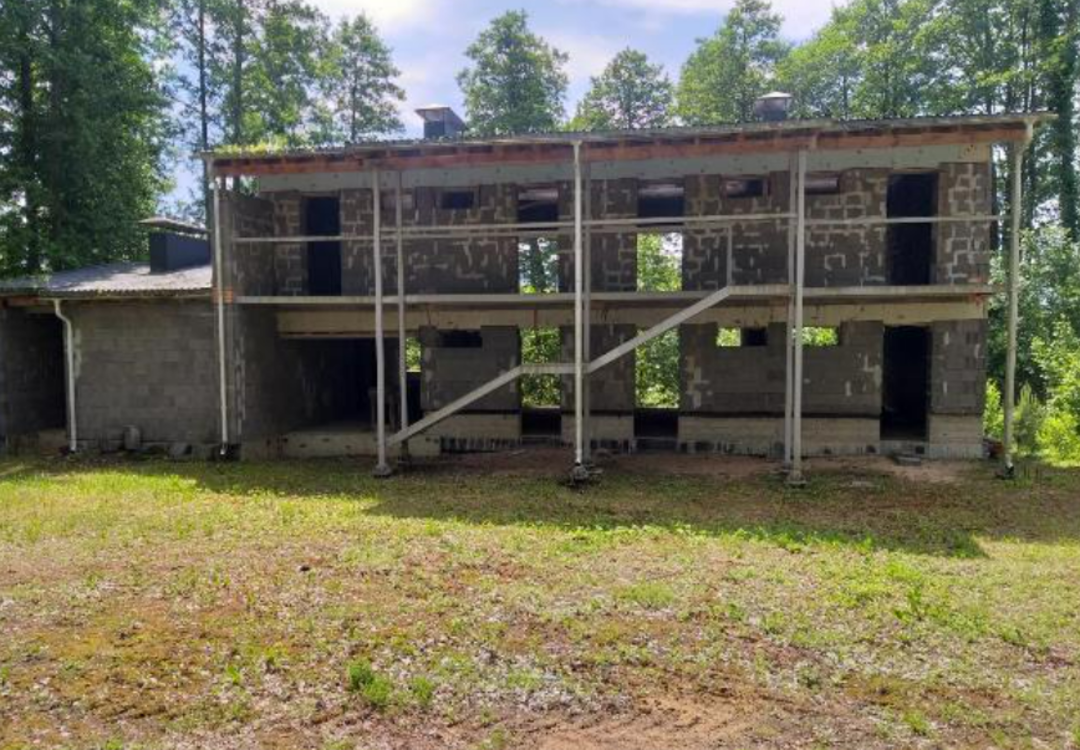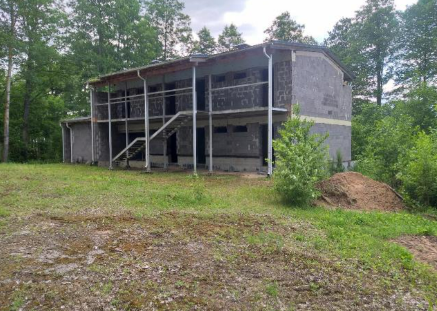Общая площадь выставленного на торги строения составляет 284 квадрата. Двухэтажное здание со стенами из керамзитобетонных блоков готово на 49%.