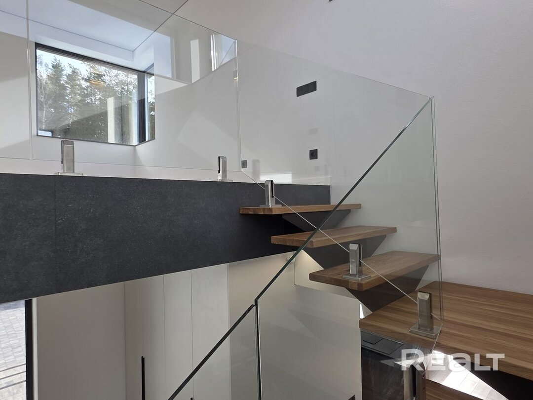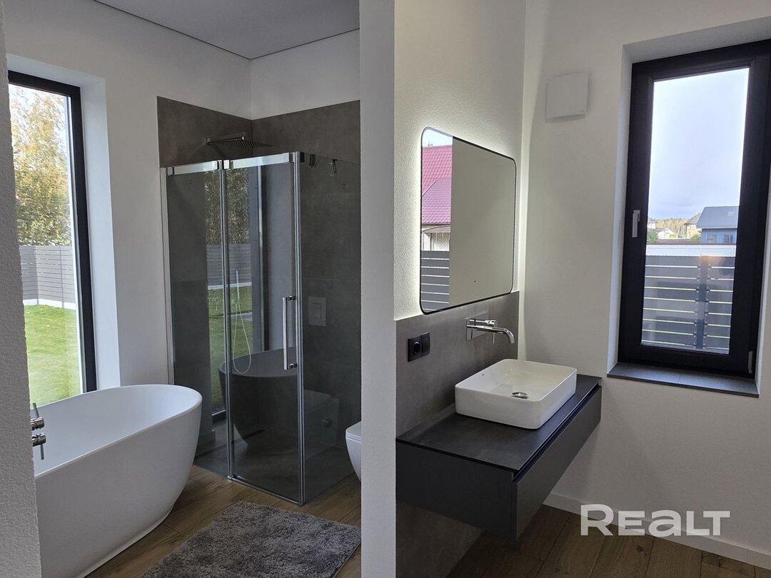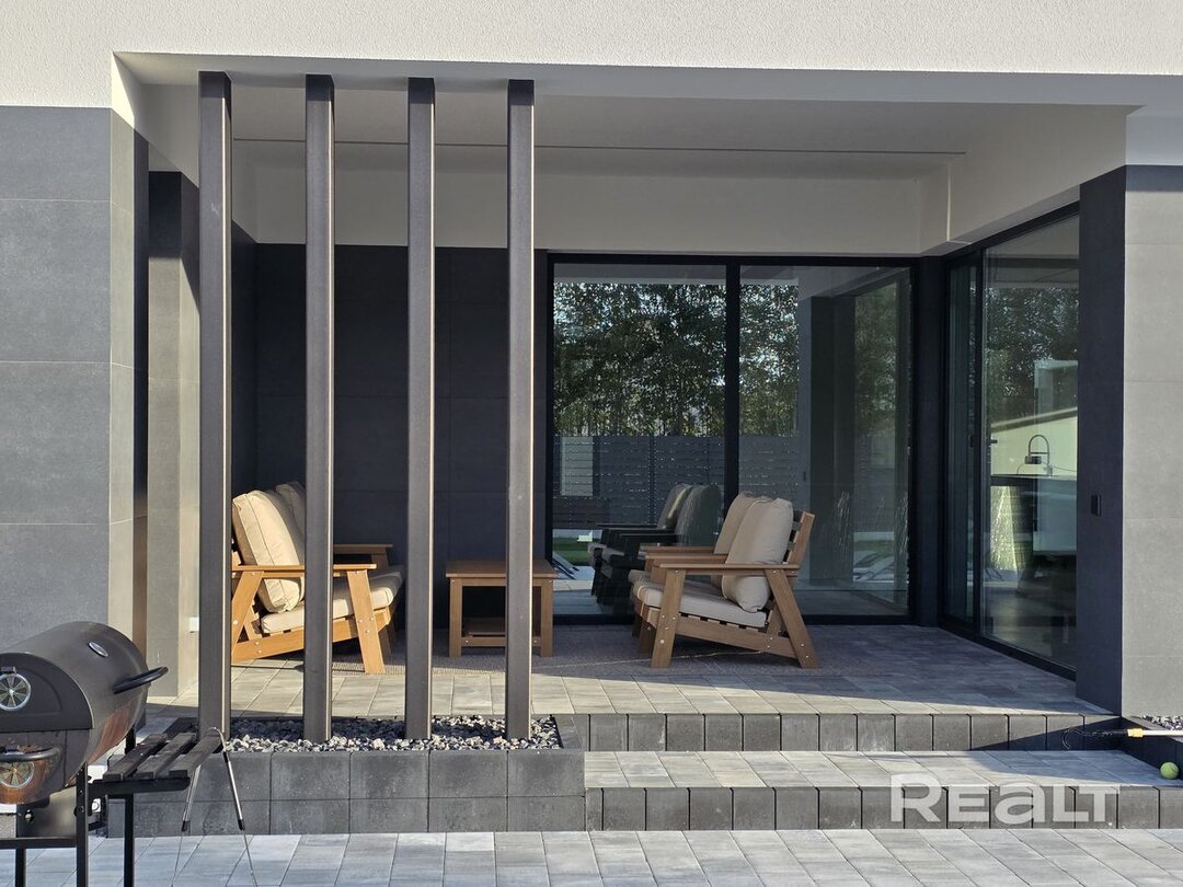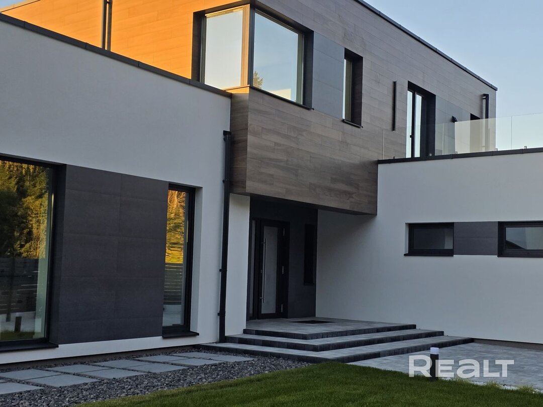 Строение основательное, для строительства использованы керамзитные блоки, монолитные фундамент и перекрытия. Фасад утеплен и отделан испанским керамогранитом. Водосточная система на плоской крыше оснащена подогревом. Установлены окна Rehau со стеклопакетами из закаленного стекла с энергосберегающим напылением, минимизирующие теплопотери.