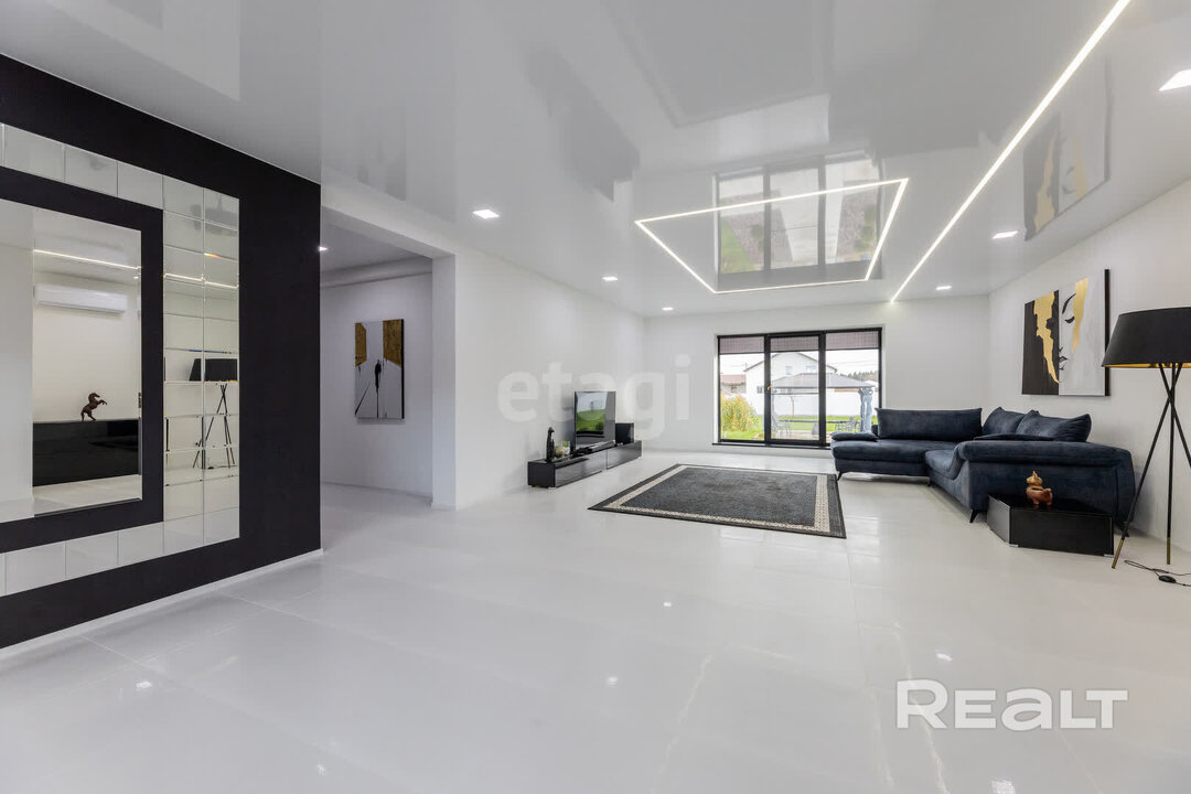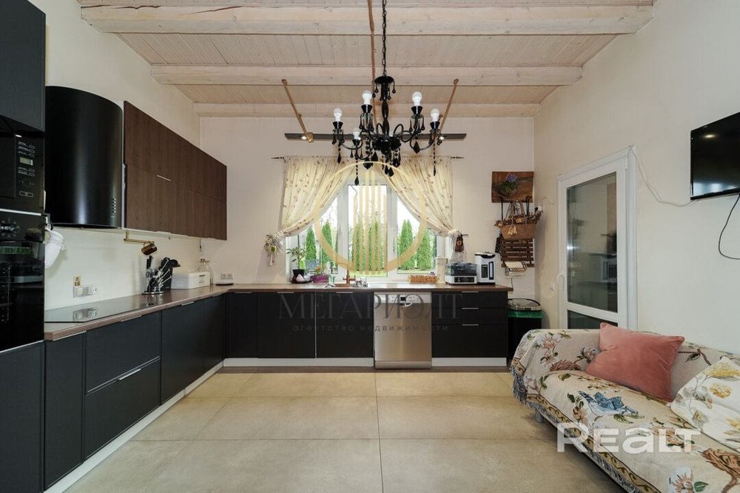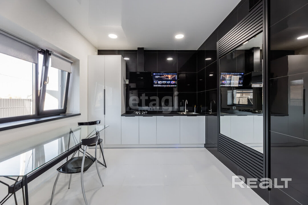 Этот современный дом находится Чуденичах, а а точнее – в коттеджном поселке, который разросся рядом с деревней. Место неплохое: живописная природа, леса и одновременно – трасса М-3, по которой удобно добираться до Минска. Инфраструктура развитая: магазины, детский сад, современная спортплощадка и даже фельдшерский пункт. А всего в 5 километрах находится горнолыжный комплекс в Силичах.