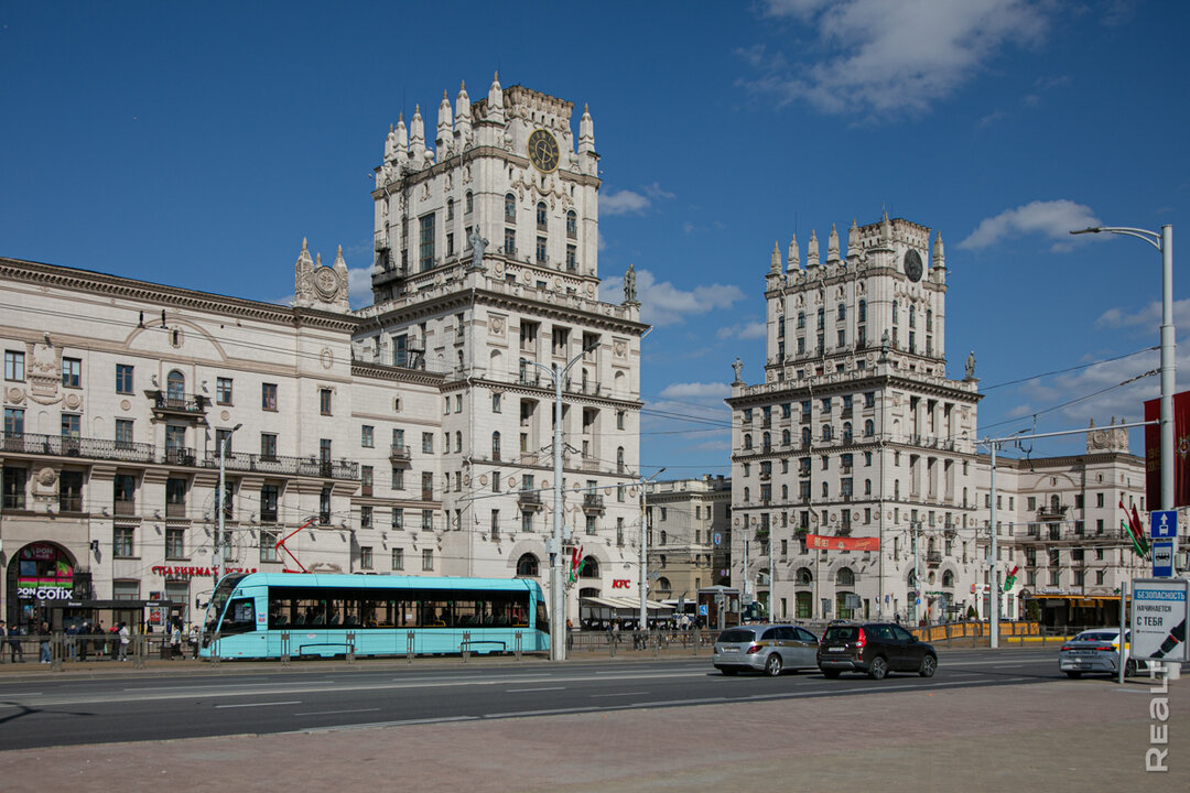 Район Центрального вокзала — это огромные башни-ворота, вечно куда-то спешащие люди, гул поездов и этот неповторимый запах ветра, смешанный с дорогой. На верхнем ярусе «Ворот Минска» виднеются по четыре скульптуры — солдата, рабочего, колхозницы и инженера. Если копнуть глубже, выяснится, что это не просто эффектный фасад. Башни в стиле позднего классицизма появились здесь в 1953 году — их спроектировал ленинградский архитектор. И вот забавная деталь, которую местные знают так же хорошо, как расписание электричек: на левой башне стоят самые большие городские часы. Циферблат больше 3,5 метров и гигантская минутная стрелка размером с человека поражают. Эти часы созданы больше ста лет назад в Германии. В Беларусь они попали в качестве военного трофея после Великой Отечественной войны.