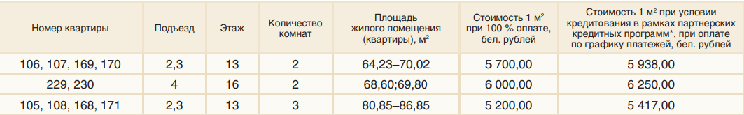 Согласно последним изменениям, «Минскстрой» предлагает всем желающим 10 квартир в 2,3, и 4 секции на 13−16 этажах: