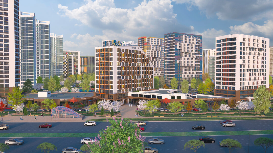 Проект реализует концепцию «15-минутного города», где все необходимое -детские сады и школы, поликлиники, торговый центр «Авиа Молл», станции метро — находится в шаговой доступности.