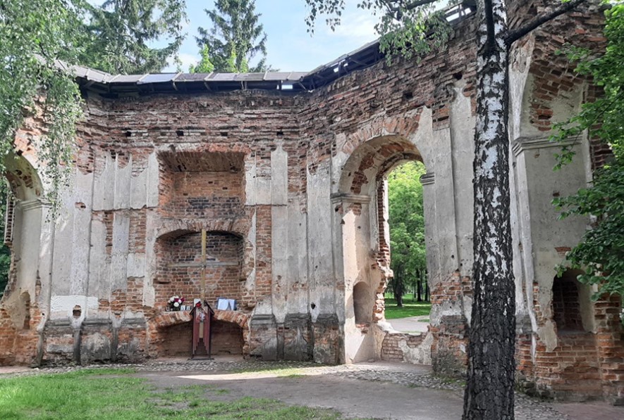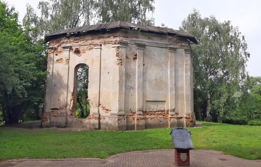 По фотографиям и архивным материалам удалось узнать, что каплица-усыпальница Прушинских, построенная в ⅩⅧ веке, представляла собой 8-гранник с шатровой кровлей, которую завершал купол на барабане. Фасады были декорированы пилястрами, стены фасадов завершались фронтонами с лепным декором, карнизом. Покрытие кровли было сначала из гонта, а затем — из металла.