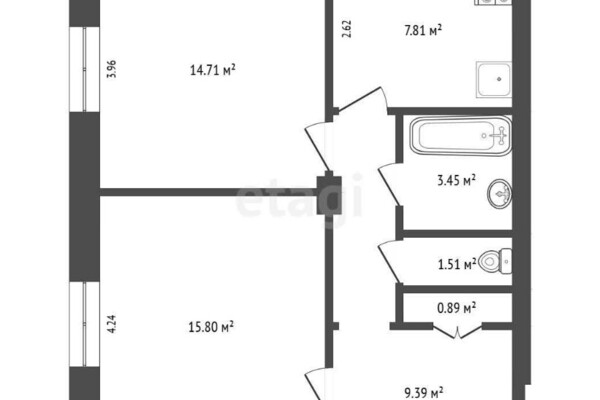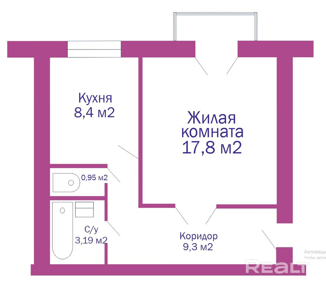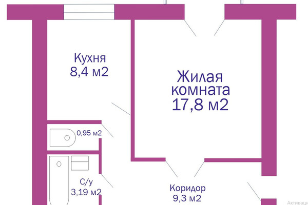 Квартира расположена на четвертом этаже. Общая площадь — 39 метров, жилая — 17, кухня — 8. Потолки трехметровые. В жилой комнате есть выход на небольшой балкон. В раздельном санузле аккуратный светлый ремонт, установлена ванна и подключена стиральная машина.