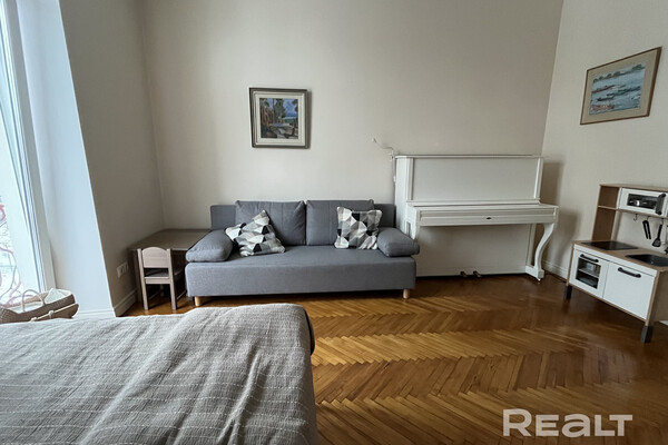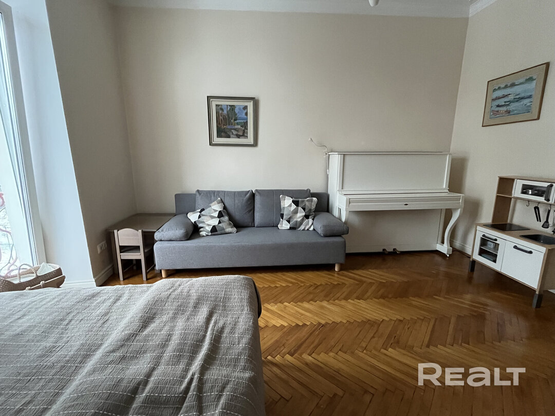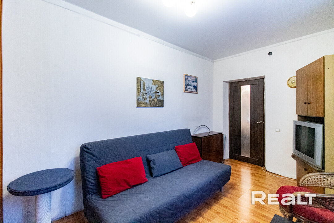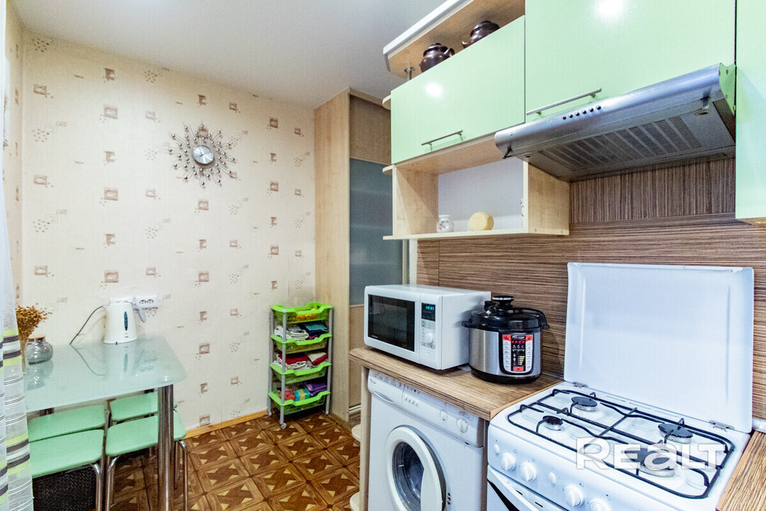 Эта однокомнатная квартира находится на проспекте Независимости, 76а — буквально в паре минут от входа в метро на станции «Академия наук».