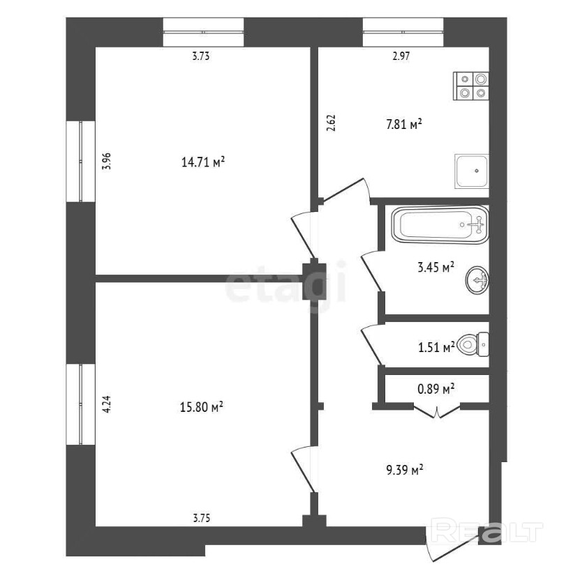 Стоимость двушки — 106 тысяч долларов. Метр выходит 1 776 долларов.