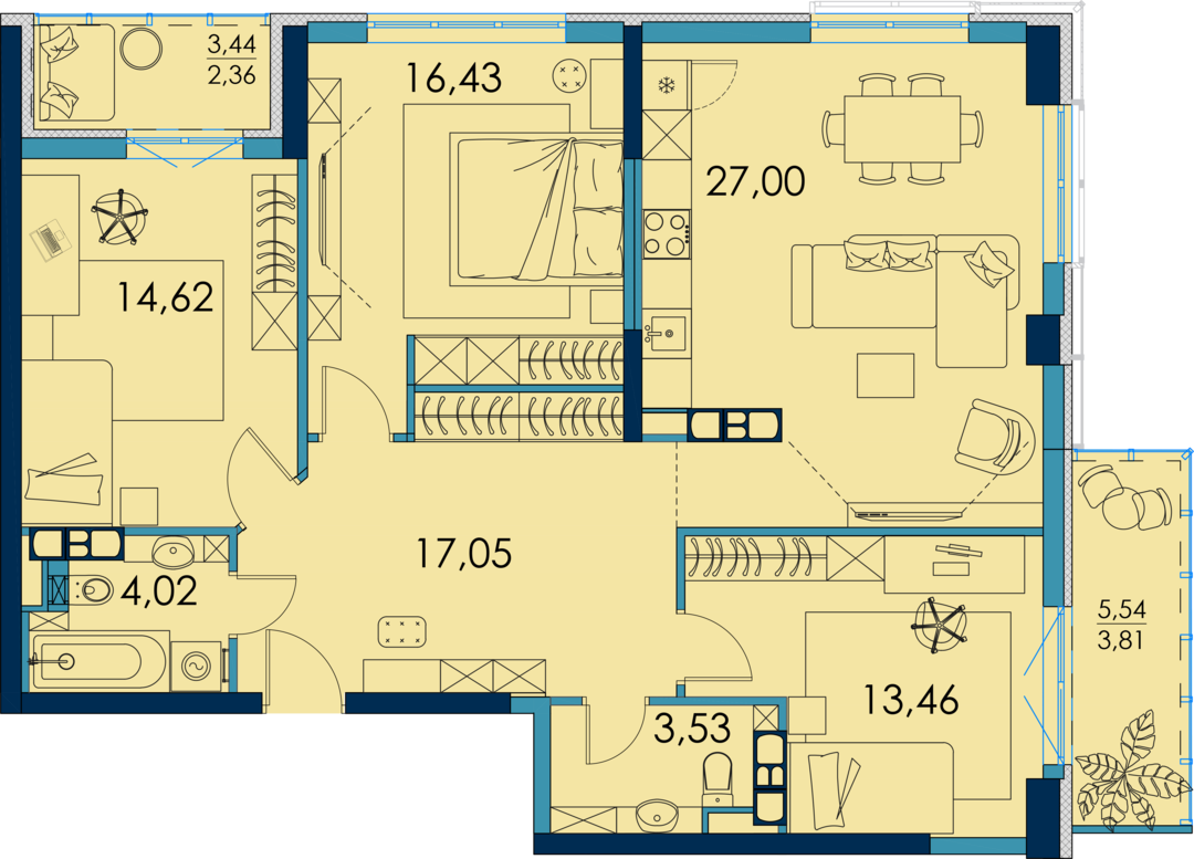 - В этих «трешках» свободная планировка, где можно реализовать разные сценарии, — объясняет менеджер по продажам. — Благодаря отсутствию несущих стен внутри квартиры, при желании здесь можно организовать и четыре изолированные комнаты. Для семей с одним или двумя детьми это идеальный вариант, особенно с учетом, что детский сад будет прямо во дворе.