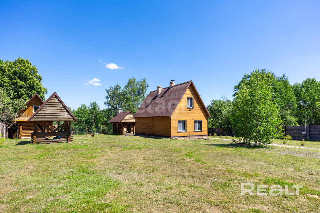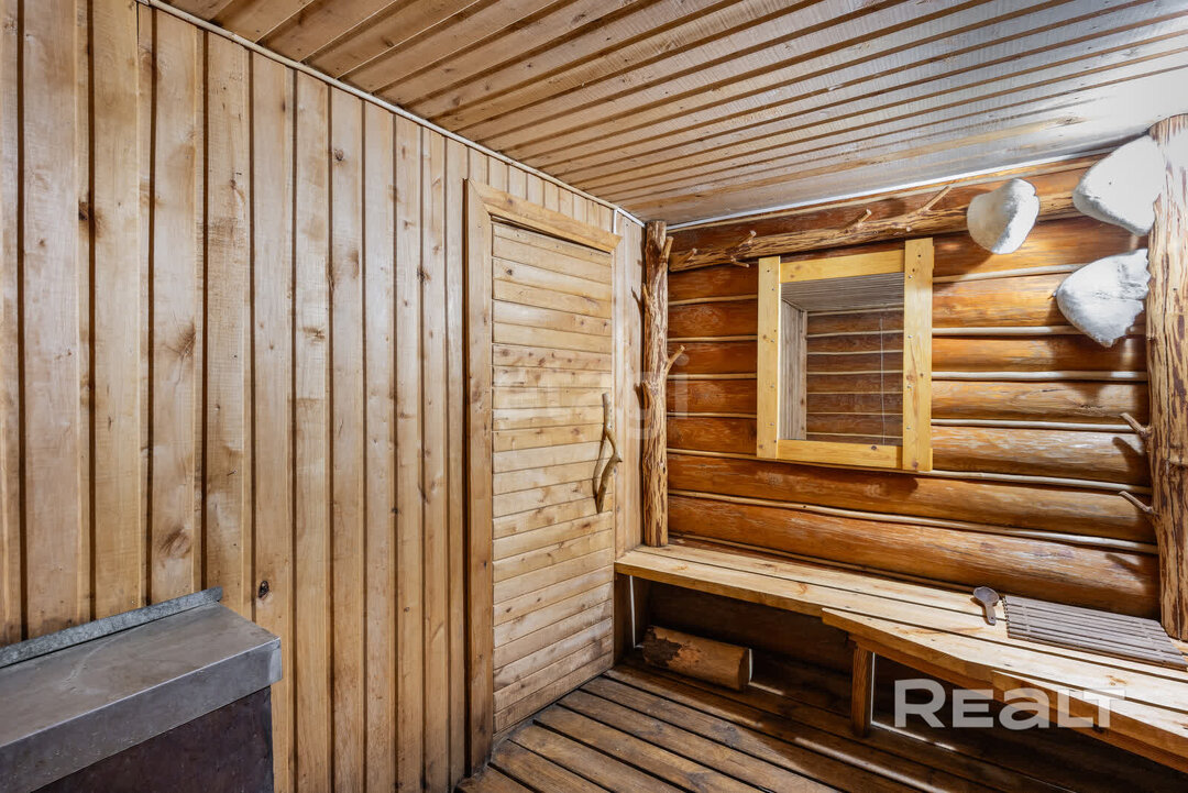 Помимо основного дома, на участке возведены еще несколько построек. Двухэтажная баня идет с комнатой отдыха и балконом. Есть отдельный дом с кухней и печкой, а также стоит беседка. Все они из сруба и оборудованы коммуникациями.