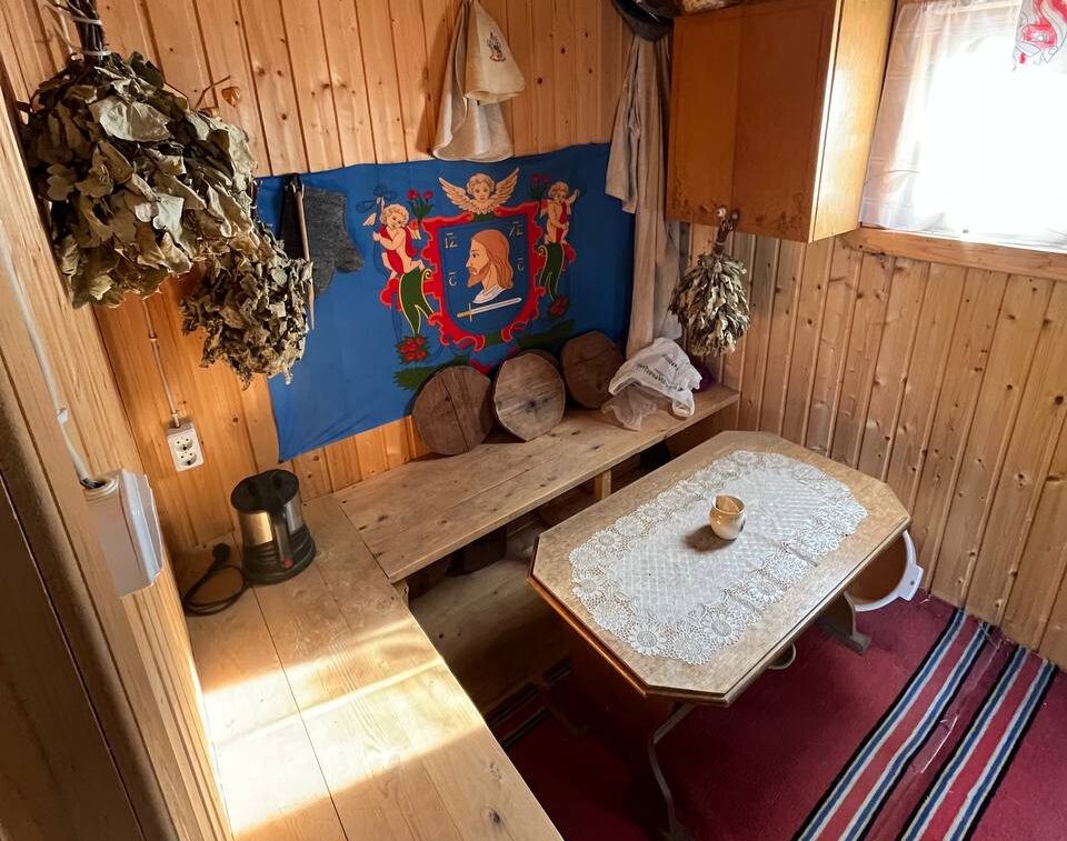 В дом-баню проведена вода, установлен бойлер, газовый баллон для бытовых нужд, отопление печное.