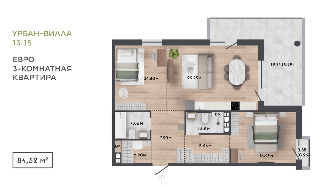 Урбан-вилла под номером 13.15 в генплане получит монолитный каркас, который дополнят керамзитобетонными блоками. Фасад выполнят из современных высококачественных материалов, которые устойчивы к ультрафиолету, осадкам, повышенной влажности и температуре. Эстетики добавит кортеновская сталь, которая будет использована в элементах наружного оформления.