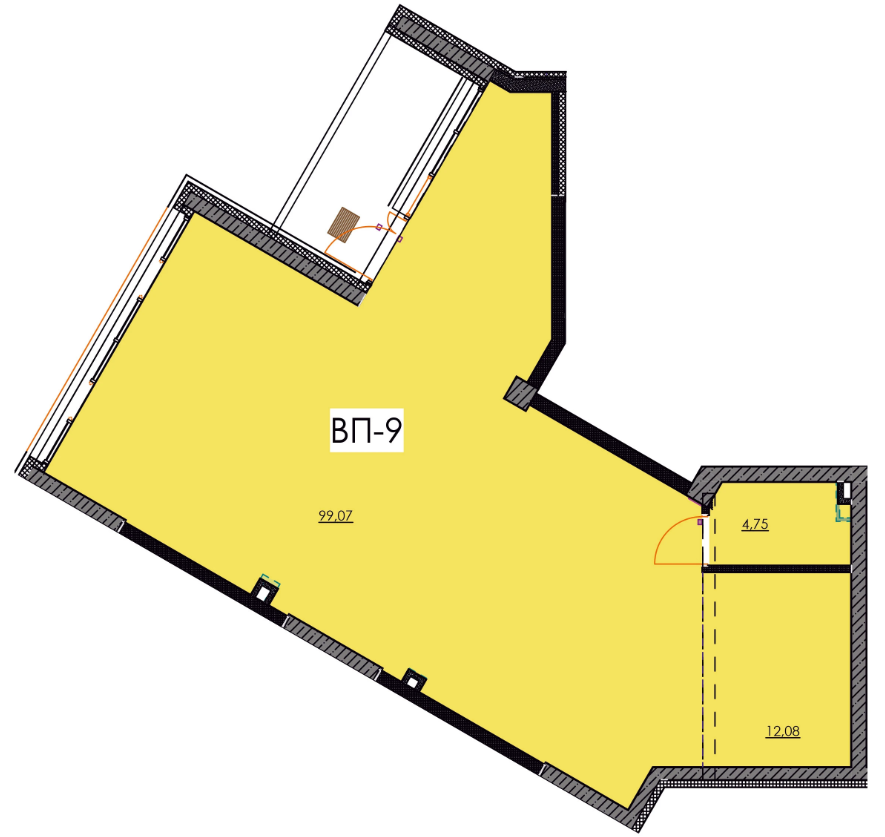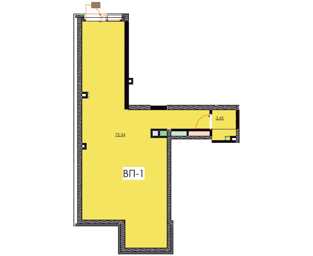 На схеме от застройщика можно увидеть все доступные решения. Так, например, выглядит планировка самого компактного помещения для бизнеса, его площадь — 75,79 м². Оно расположено в первой секции. Отдельный вход — в направлении улиц Притыцкого и Жудро.