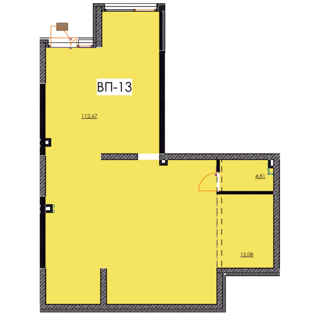 А вот вариант побольше, на 115,9 м², в третьей секции. Помещение с очень выгодным угловым расположением, которое позволит ему «захватить» все потоки трафика. Вход в объект — тоже в направлении улиц Притыцкого и Жудро.