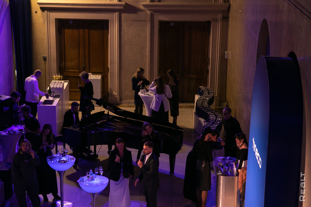 Приглушенный свет, элегантные гости, классическая музыка и специально созданные для ивента ароматы превратили художественный музей в мистическую арт-лабораторию. Экскурсовод Артем Лапицкий поделился секретами прочтения линий, пятен, форм и цвета в произведениях импрессионистов. А во временных арт-объектах благодаря лайфхакам Артема гости смогли увидеть творения футуристичных художников.