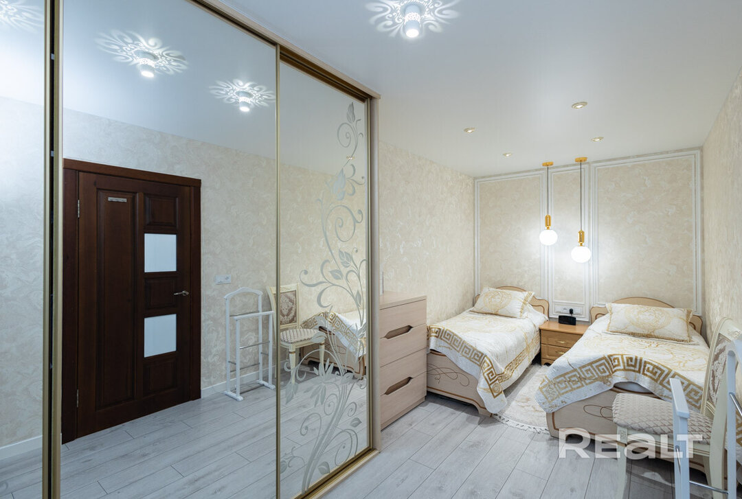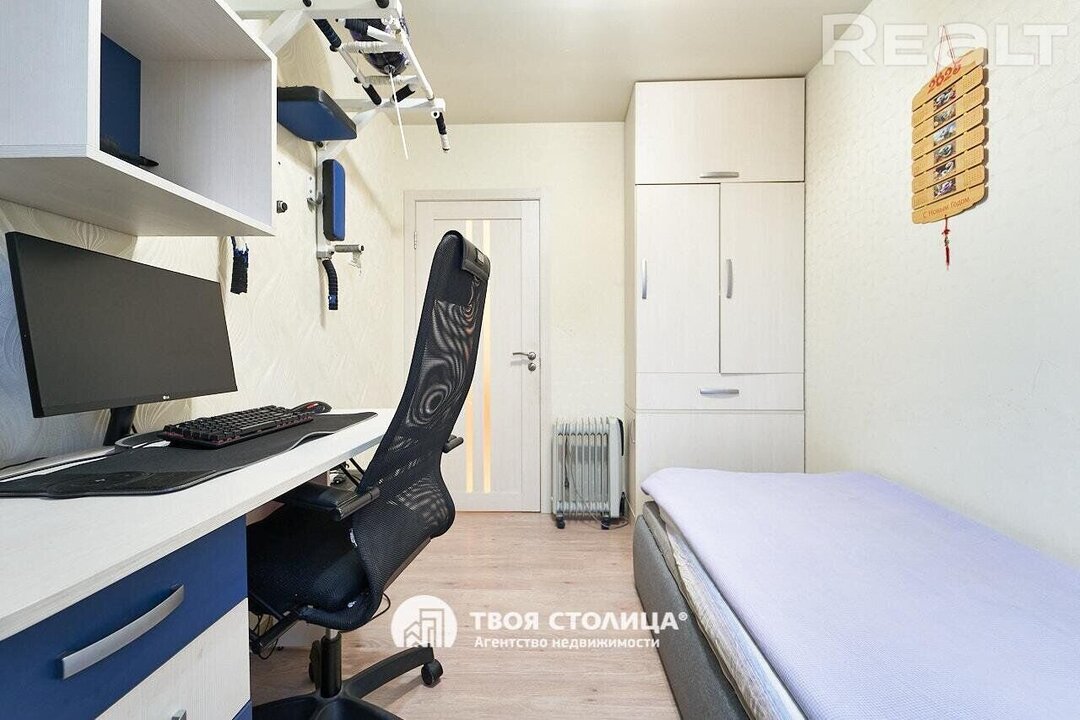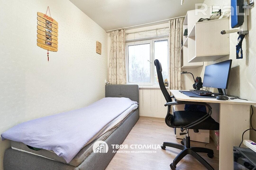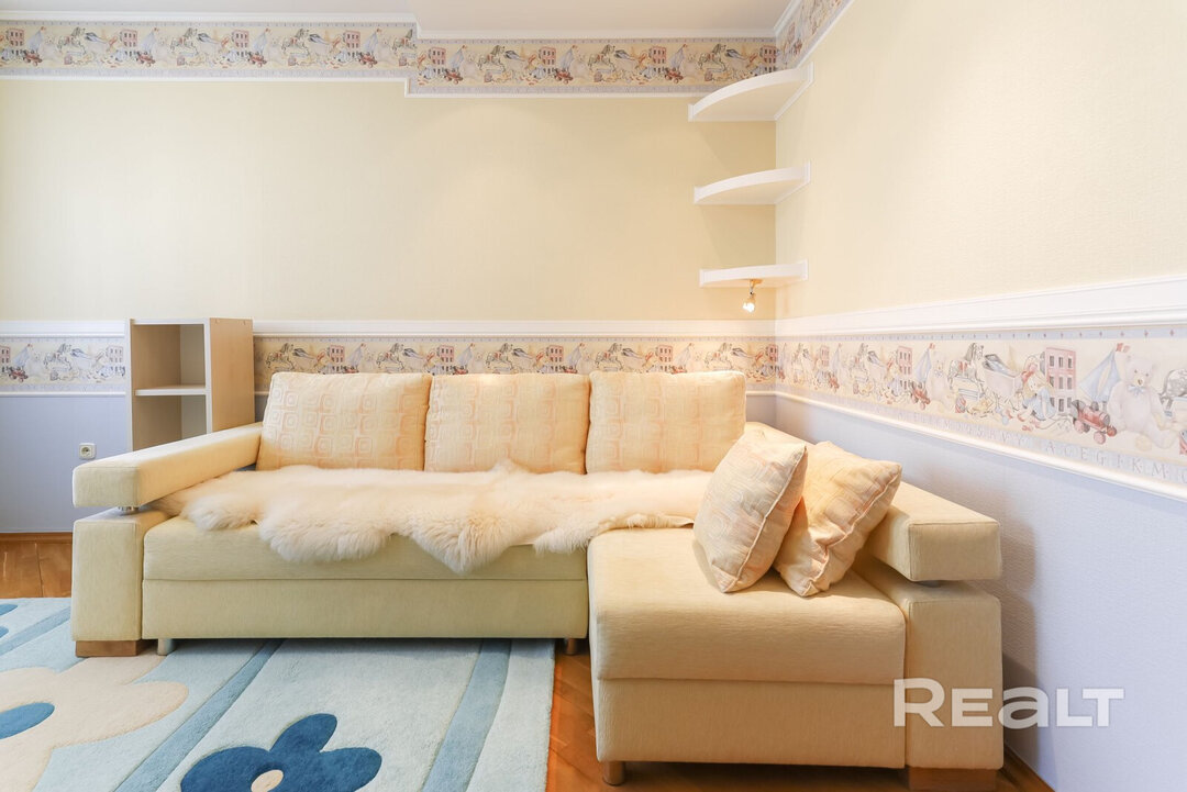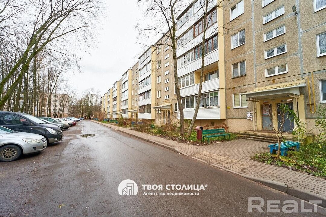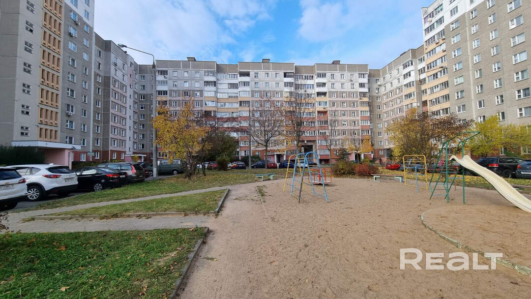 Недалеко от дома расположился торговый центр «Червенский», а напротив — парковая зона и река Свислочь.