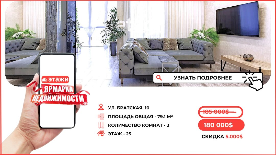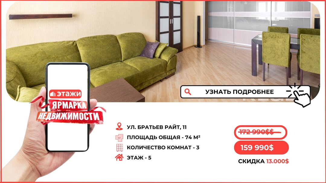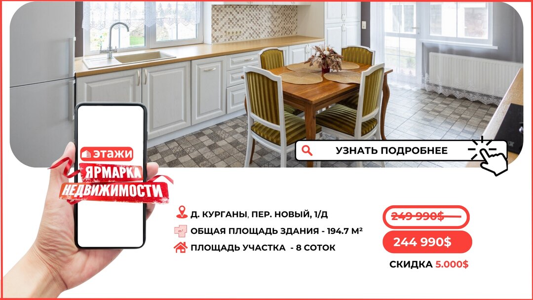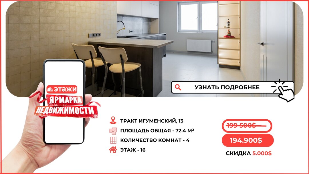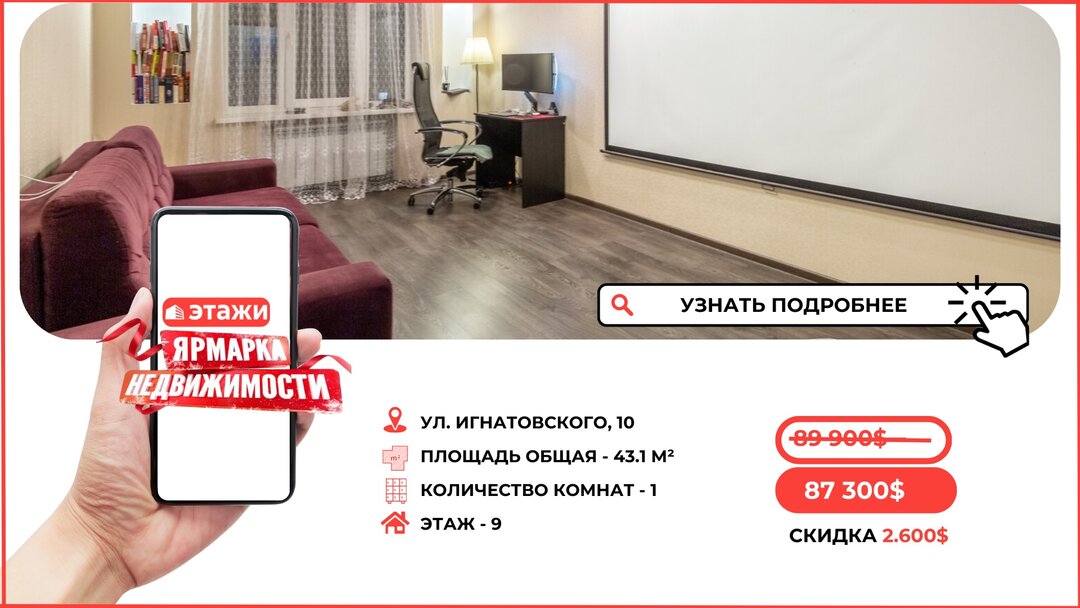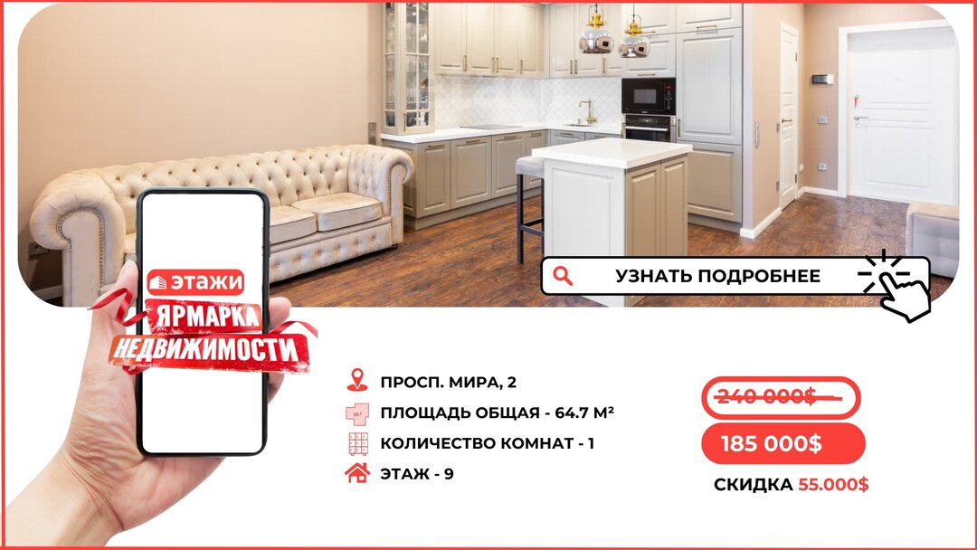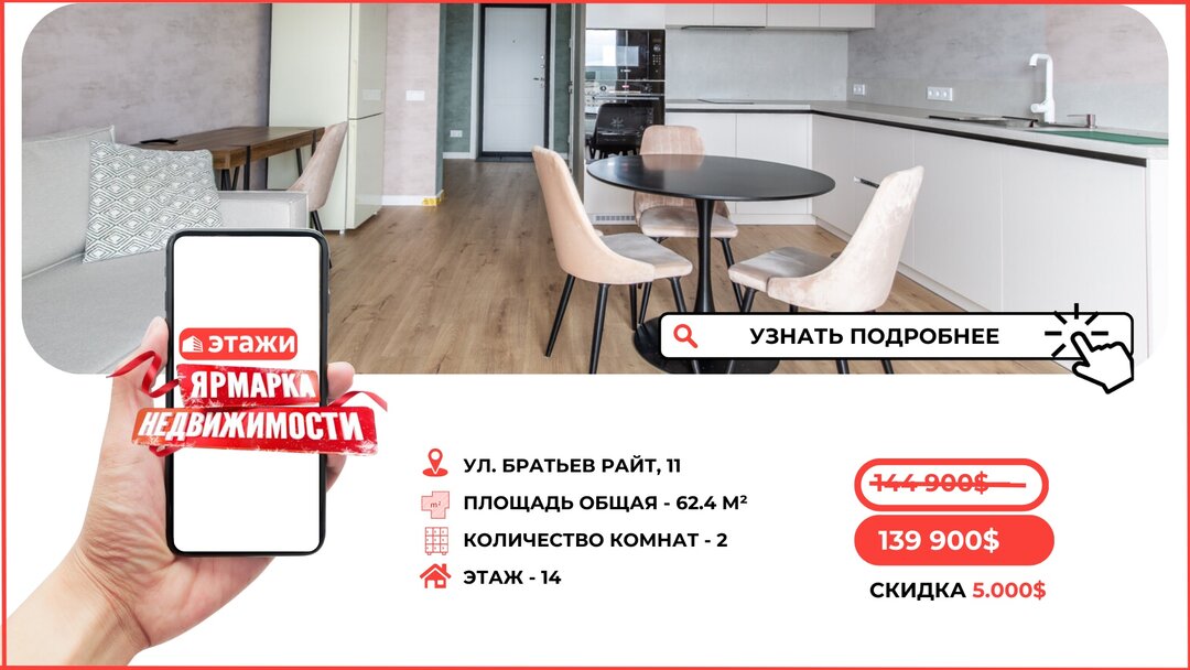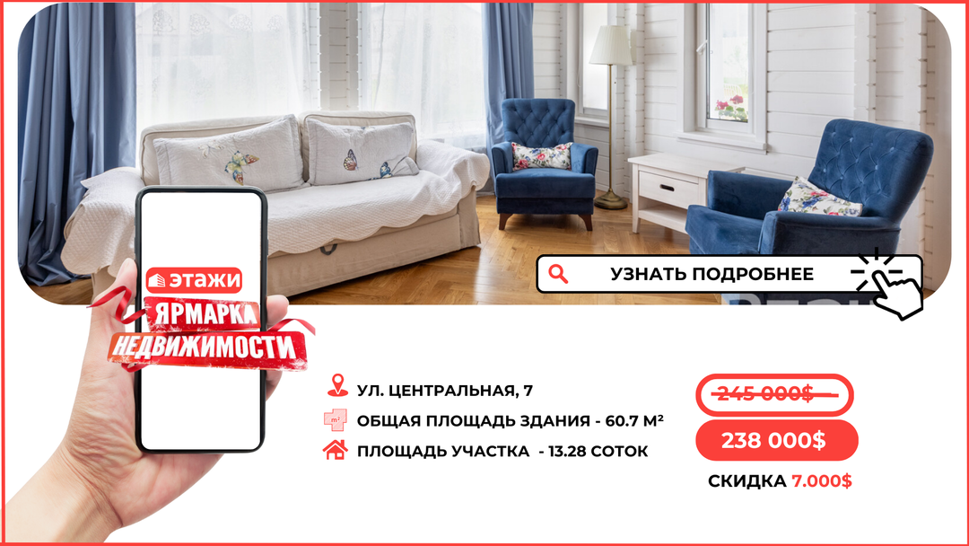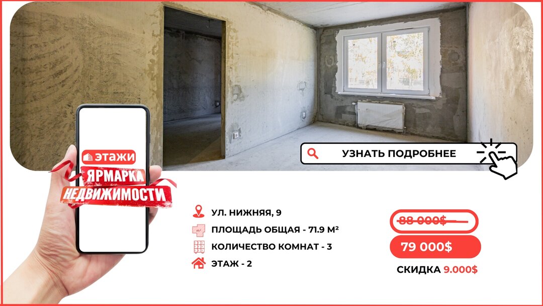 Скидки на квартиры доходят до 15 000 USD, а на дома и коттеджи до 55 000 USD! В ярмарке участвуют более 33 объектов, среди которых не только квартиры в Минске и Минской области, но также дачи и дома для круглогодичного проживания разных ценовых категорий! Если вы хотели купить квартиру или загородную недвижимость в 2025 году и ждали снижения цен, то Ярмарка недвижимости в «Этажах» — реальный шанс обрести дом в 2025 году!