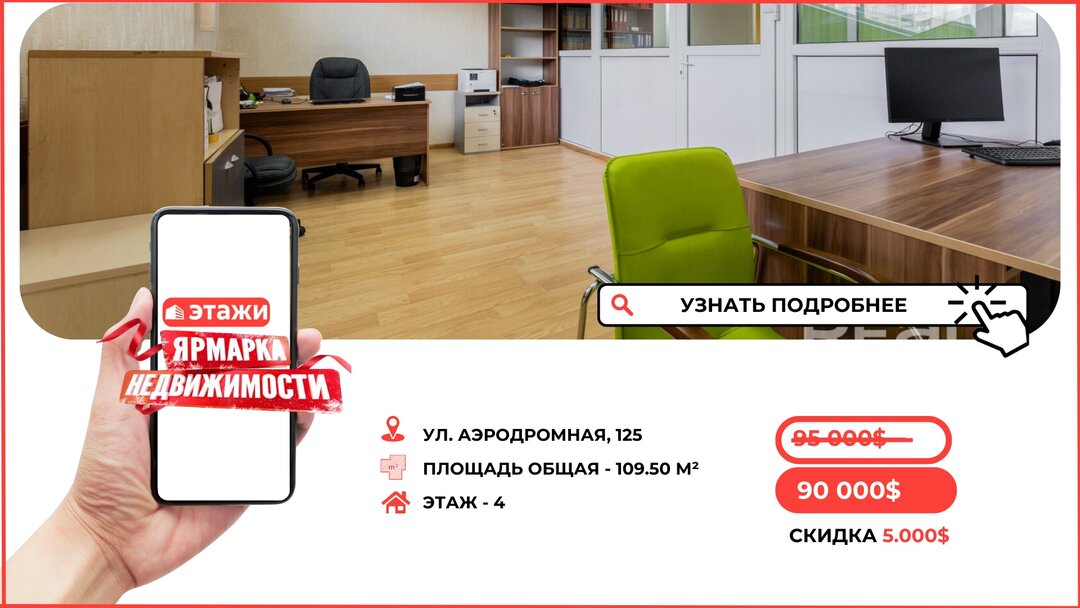 32. Современный офис площадью 109,5 м² с ремонтом на 4 этаже по ул. Аэродромной 125 (пересечение улиц Аэродромная и Володько) напротив Минск Мира, квартал «Эмиратс».