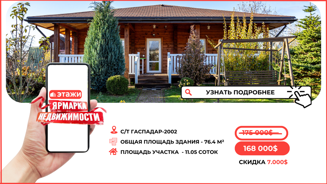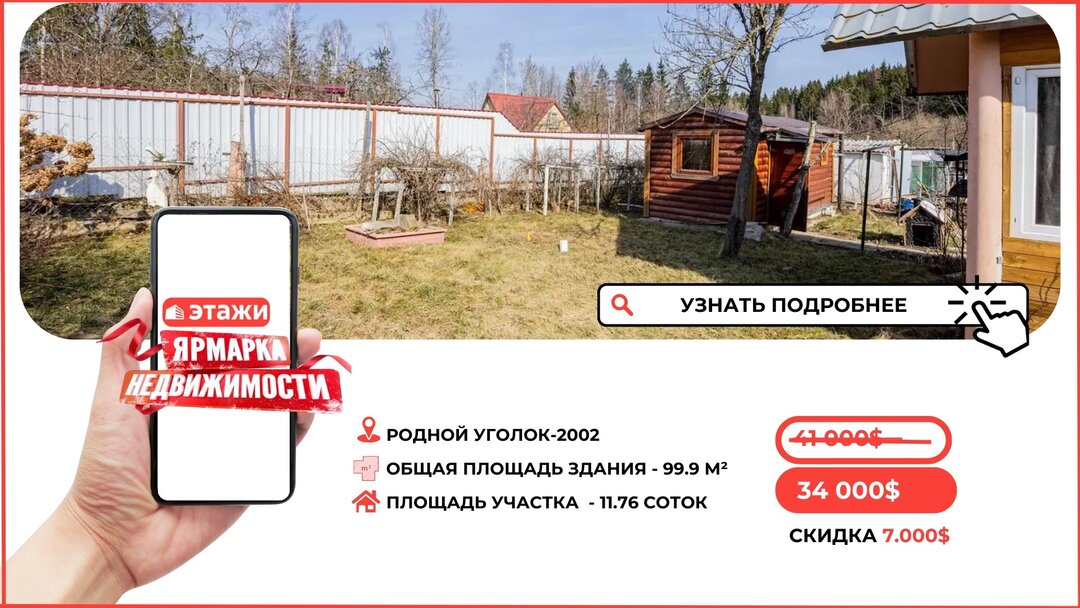 28. В непосредственной близости от города Минска, в 3-х минутах езды от МКАД за аг. Ждановичи в садовом товариществе «ГАСПАДАР-2002» находится красавец-дом. Он изготовлен из экологически чистого материала — деревянный сруб. Дом имеет правильную квадратную форму, стоит на мощном ленточном фундаменте, покрывает его тихая, в то же время очень надежная мягкая кровля. Дом расположен на ухоженном, полностью огороженном, правильной формы участке размером 11,05 соток, украшенным ландшафтным дизайном с автостоянкой.