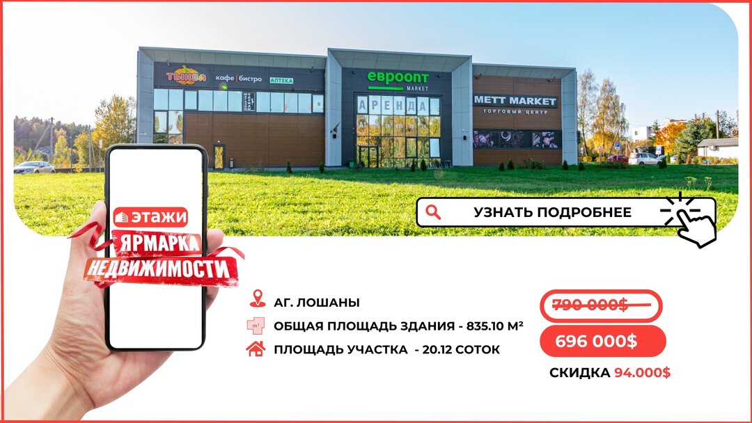 33. Предлагаем вашему вниманию двухэтажное здание 835,1 м.кв. расположенное в 20 км от МКАД по адресу Минский р-н, аг. Лошаны, ул. Минская, 3.