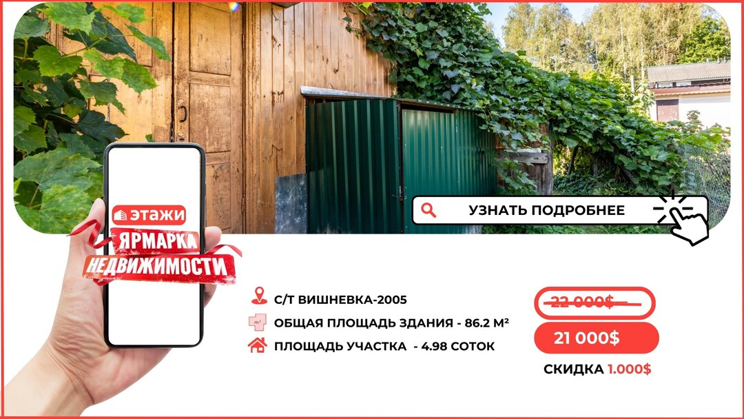 17. Если вы мечтали о месте, где можно отдохнуть от городской суеты, дышать чистым воздухом и наслаждаться природой, — это предложение для вас. Продается двухэтажная кирпичная дача в Смолевичском районе, садовое товарищество «Сутоки». Московское направление. Дом ухоженный, внутри обшит вагонкой — тепло и по-домашнему.