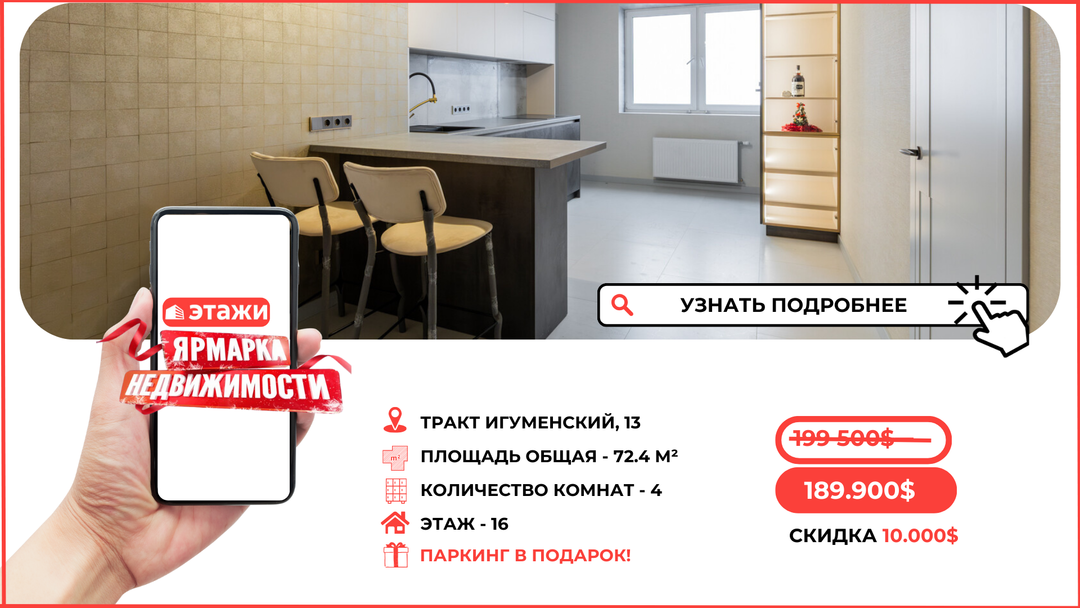 Скидки на квартиры доходят до 15 000 USD, а на дома и коттеджи до 55 000 USD! В ярмарке участвуют более 33 объектов, среди которых не только квартиры в Минске и Минской области, но также дачи и дома для круглогодичного проживания разных ценовых категорий! Если вы хотели купить квартиру или загородную недвижимость в 2025 году и ждали снижения цен, то Ярмарка недвижимости в «Этажах» — реальный шанс обрести дом в 2025 году!