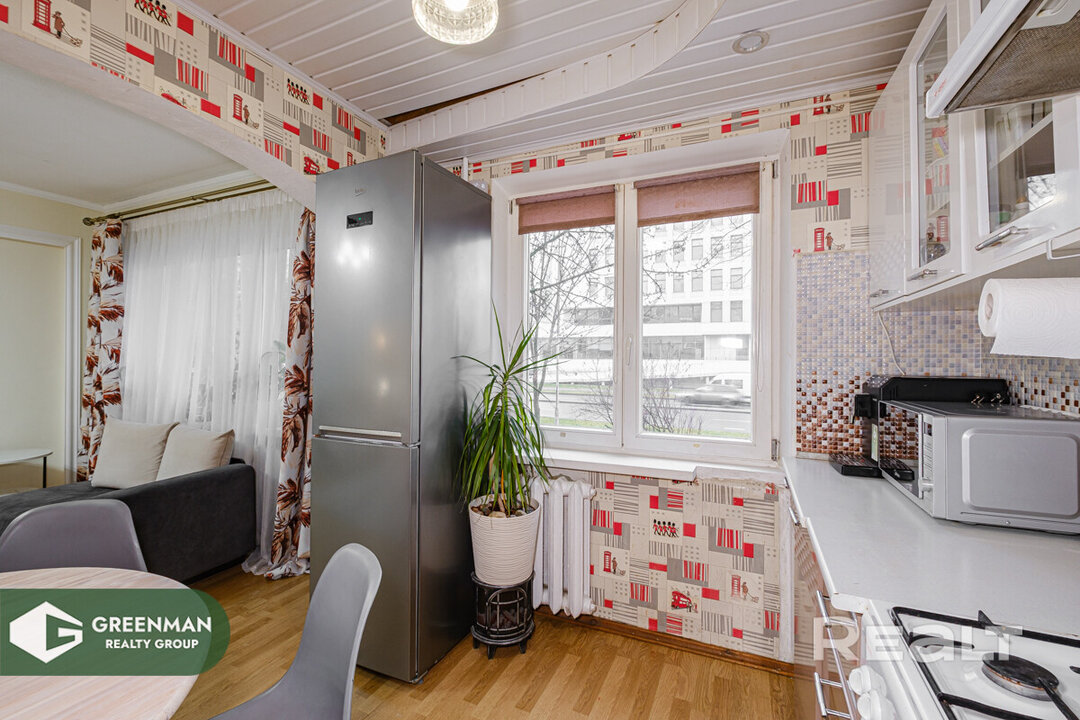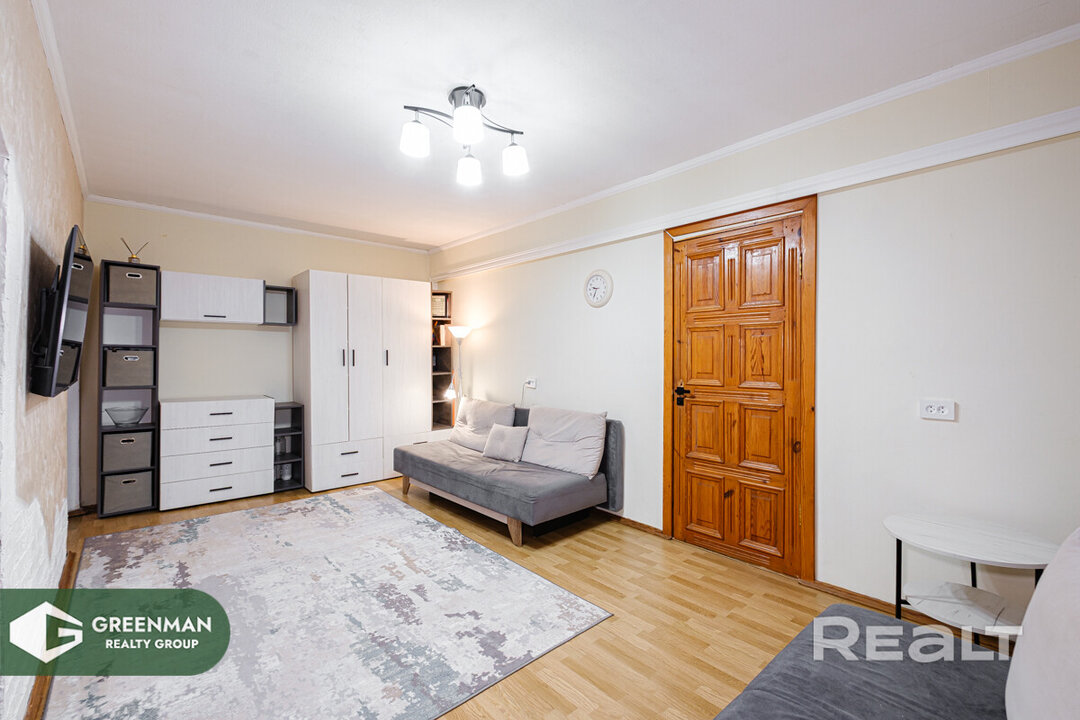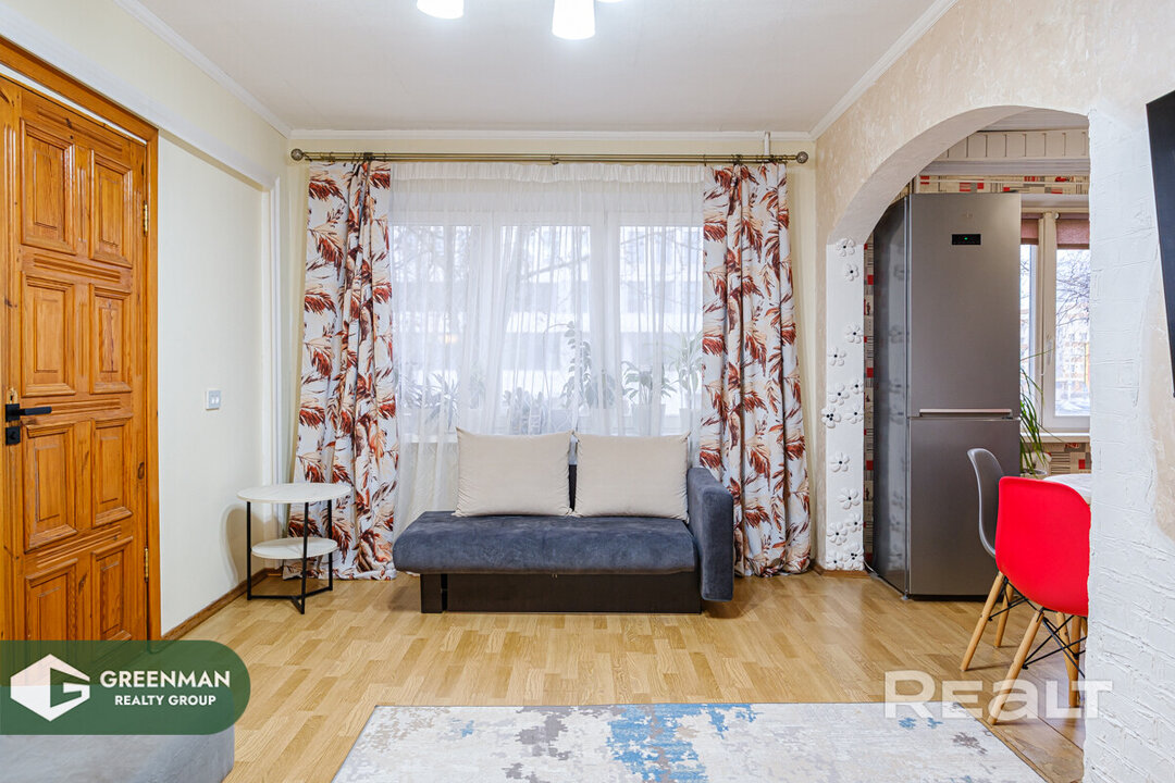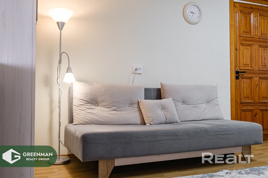 Следующий вариант — однокомнатная квартира на втором этаже девятиэтажного дома на Матусевича, 21. Это в десяти минутах пешком от станции метро «Спортивная».