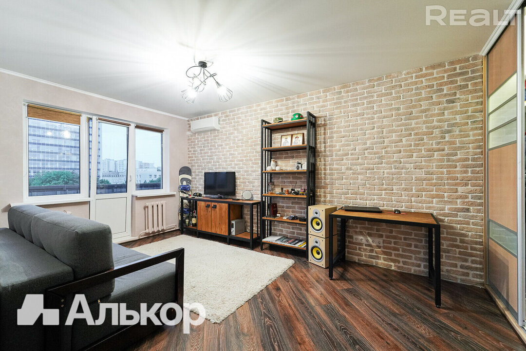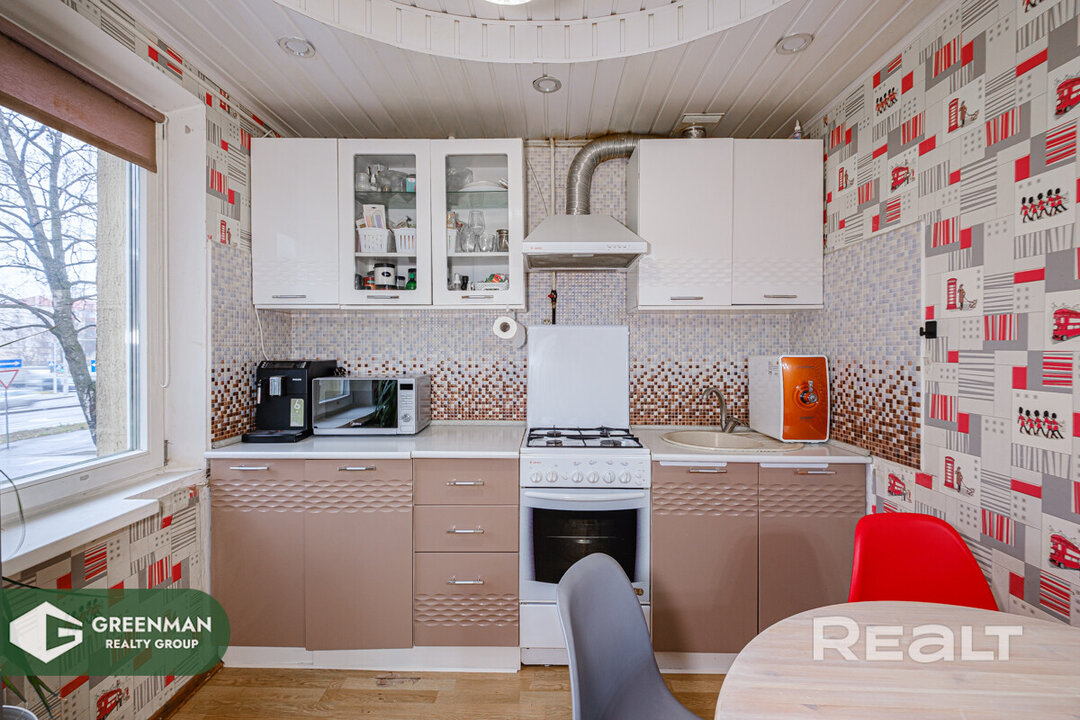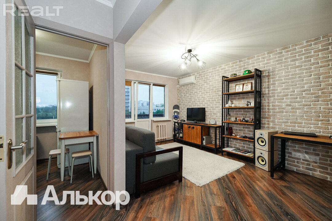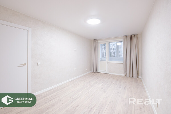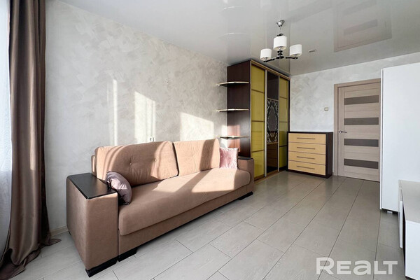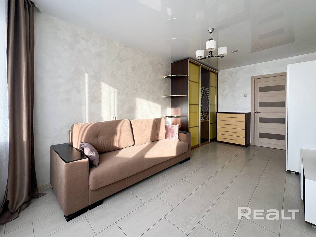 Следующий вариант — однокомнатная квартира на втором этаже девятиэтажного дома на Матусевича, 21. Это в десяти минутах пешком от станции метро «Спортивная».