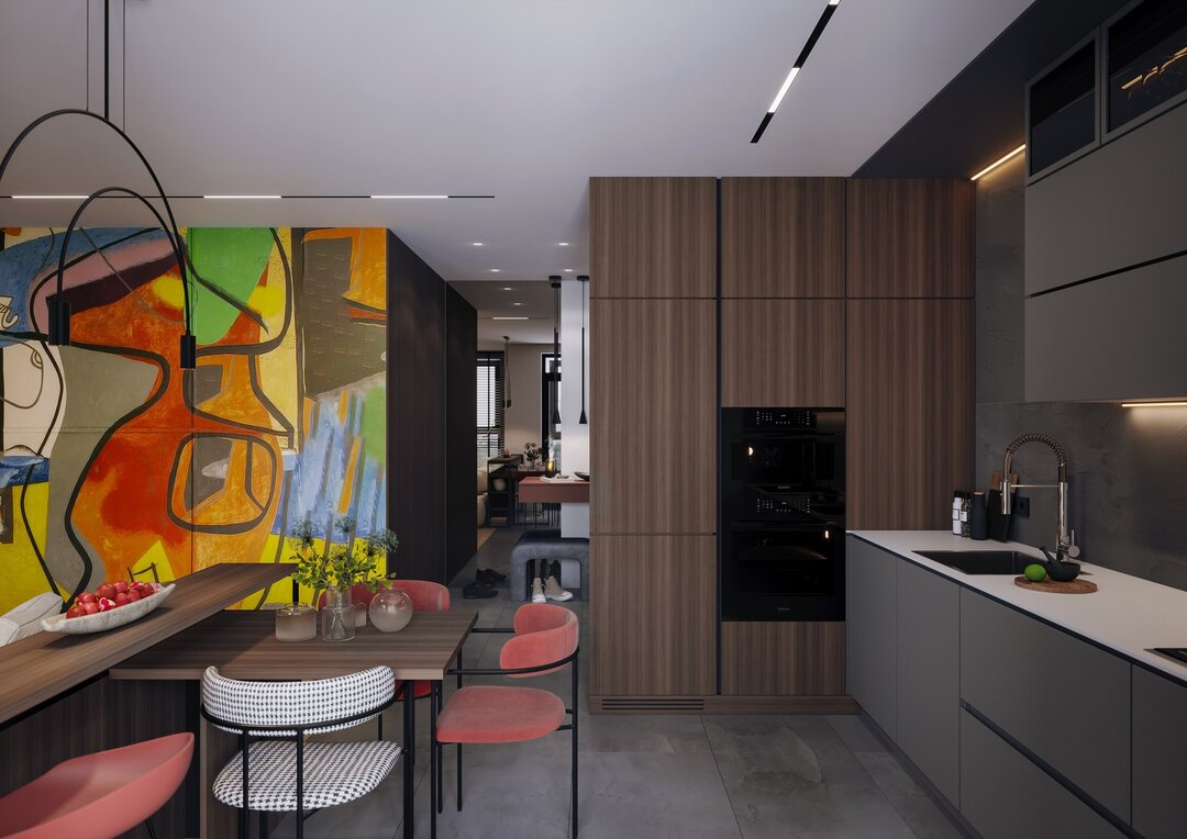 — У нас был проект, где заказчики захотели сделать на всю стену яркое граффити — это был дизайн-проект мужского интерьера для папы и сыновей, но переосмысленный за счет использования мягких фактур и обтекаемой мебели. Думаю, и биофильность в дизайне появилась по той же причине. Людям нравится больше времени проводить с природой, это успокаивает в нестабильном мире, становится таким островком стабильности. Все чаще клиенты хотят интегрировать в интерьер какие-то личные вещи. У нас был проект в ЖК «Уютный», где парень просил использовать вышивку бабушки — это аутентично и интерьер сразу становится про человека. Но, конечно, есть и те, кто еще не готов или только находится на грани перехода от минимализма, мягких цветов и спокойных оттенков к яркости и цветочным принтам, — говорит Екатерина.