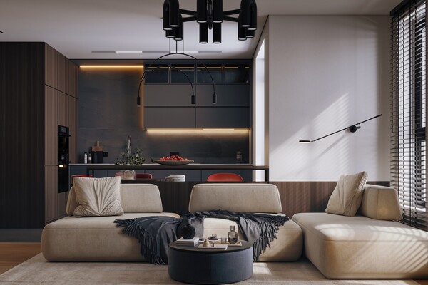 Как отмечает ресурс Designer Space, современное освещение — это не только про функционал, но и про красоту. Многоуровневые световые сценарии раскрывают текстуры и фактуры интерьера. Для этого используют центральный свет, локальные бра, торшеры и подсветку мебели.