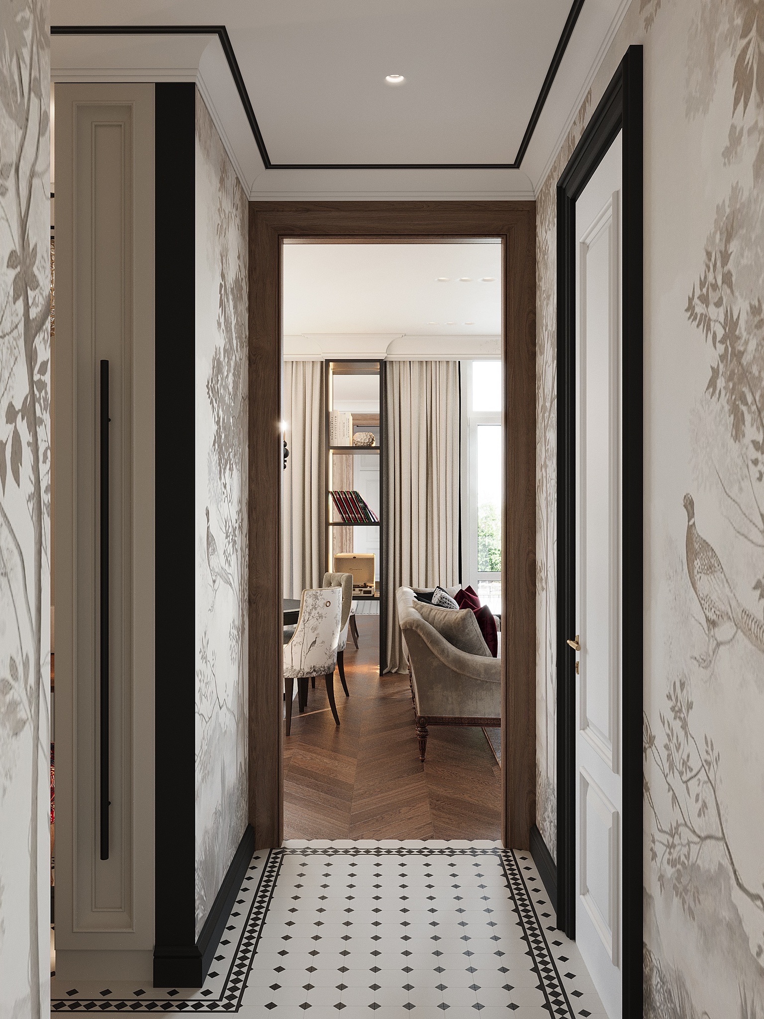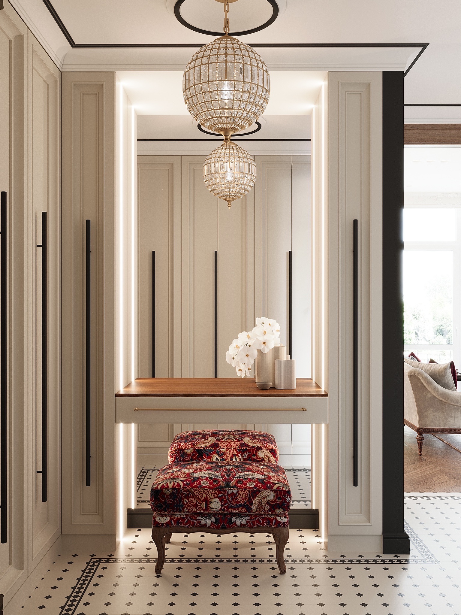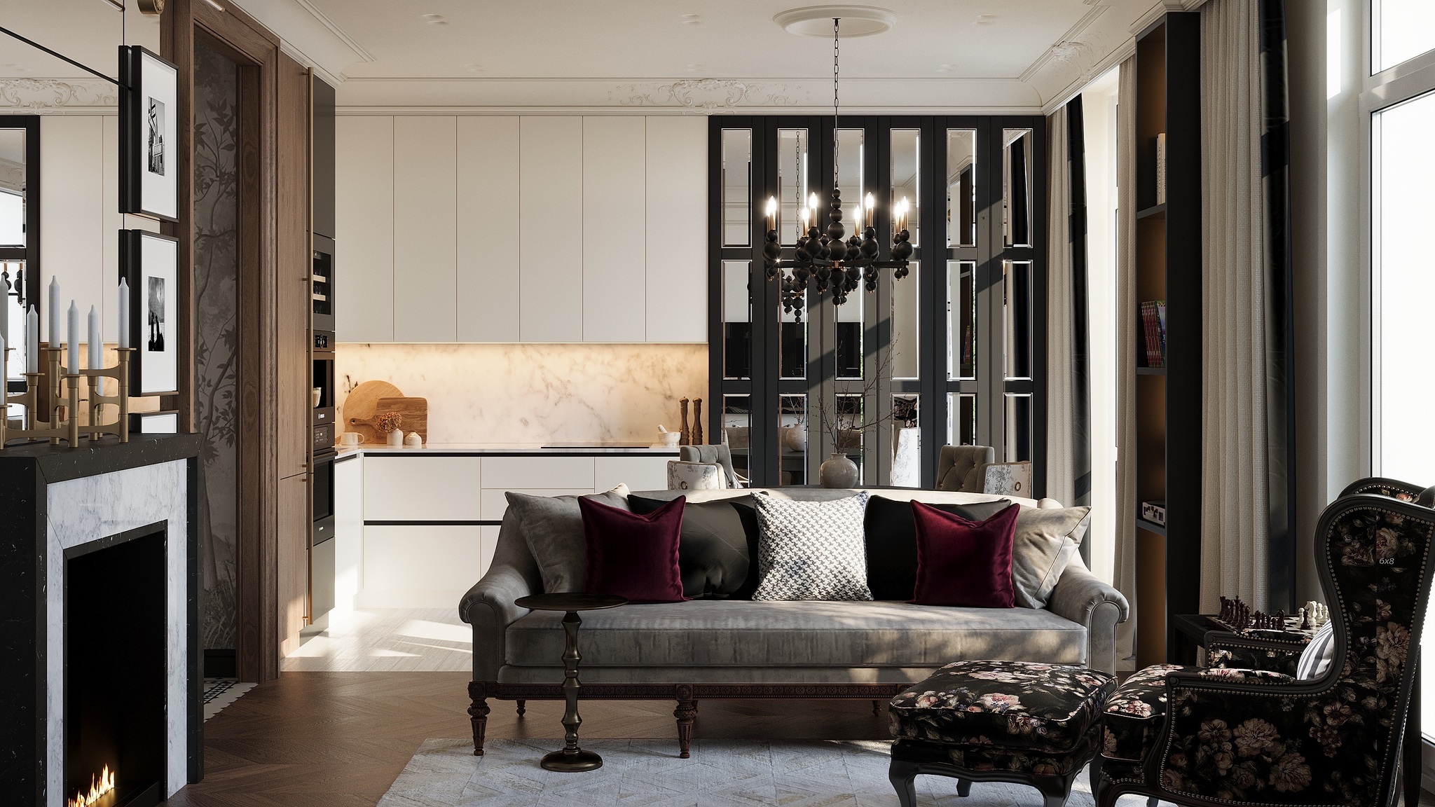 Изначально у клиентки не было запроса на интерьер в духе Шанель, но в процессе общения мы поняли, что этот образ ей идеально подходит. Он чувствовался в её манерах, речи, поведении, — рассказывает Екатерина. — Мы предложили концепцию, вдохновлённую этим образом, объяснили свою идею, и она ей понравилась. Коко Шанель — женщина с характером: нежная, сексуальная, но при этом дерзкая и умеющая отстоять своё мнение. Это и легло в основу проекта.