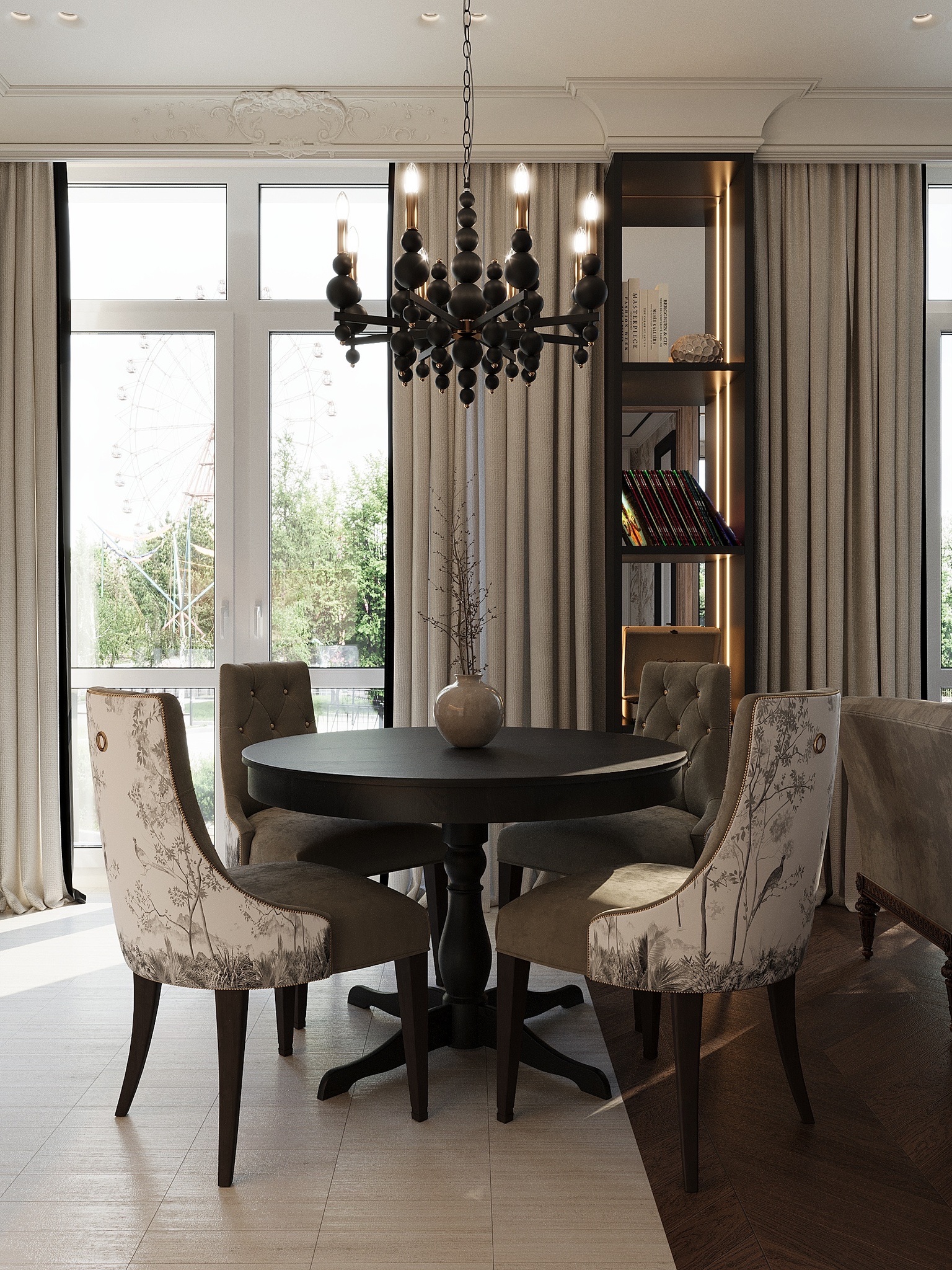 — Наши заказчики часто выбирают эклектику. Например, классика комбинируется с люстрами в стиле модерн сложных форм, винтажными шкафами и мебелью в современном стиле необычной формы и обивки, яркими шторами. Или полностью отказываются от минимализма в пользу уютной эклектики, классики, винтажного стиля. Рассказать историю заказчика помогают детали: рейки на стульях, молдинги для картин, декоративные пуфы, многослойные карнизы. А ещё комнаты выглядят элегантнее благодаря драпировкам, подзорам и мягкой, но структурированной обивке, — отмечает Евгений.