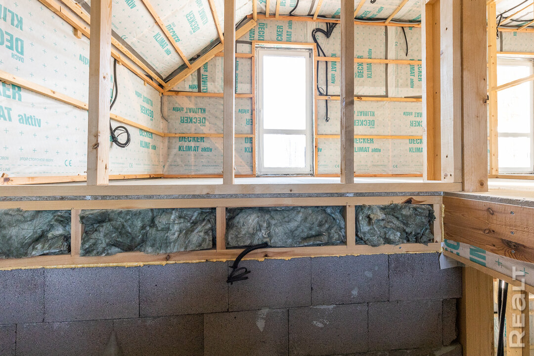 Обязательно запросите фотографии и видеоматериалы, сделанные во время строительства. Это единственный способ увидеть «внутренности» дома, которые после обшивки стали недоступны. Со стороны жилья должен быть виден сплошной слой пленки (пароизоляции) со всеми стыками, проклеенными специальной лентой. Порванная или отсутствующая пароизоляция — причина будущего промокания утеплителя и плесени.