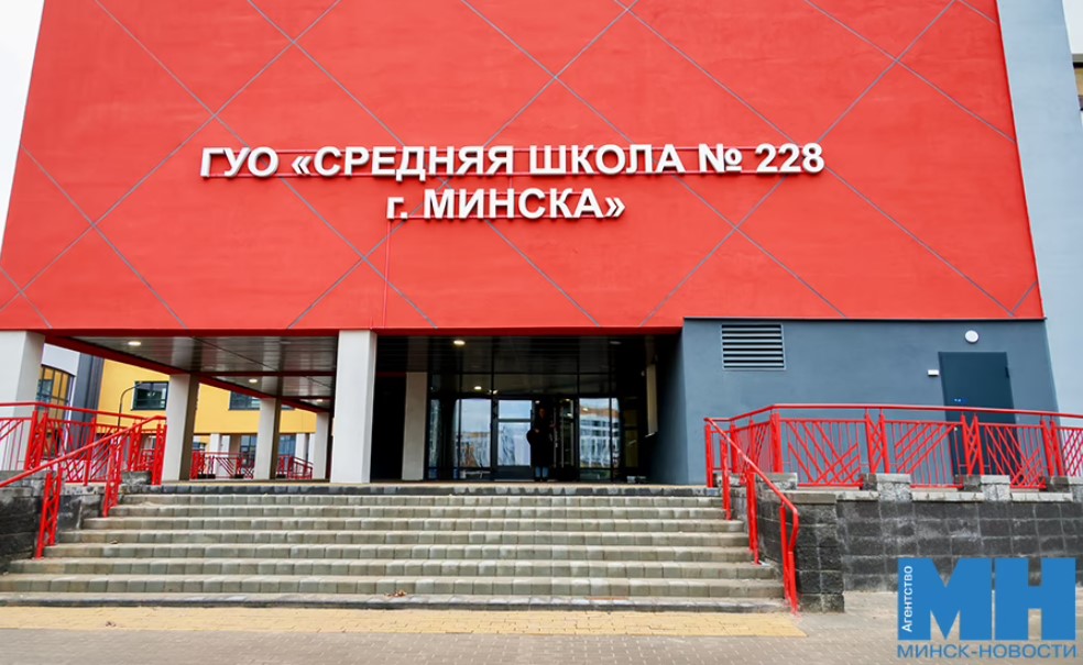 Новая школа № 228 является третьей по счету в «Минск-Мире» (первые две — № 226 и 227 — работают на пределе проектных мощностей). Она рассчитана на 1 020 ребят. Здесь есть бассейн и два спортивных зала. Здание яркое и выразительное. Фасад украшают геометрические абстракции. Интерьер тоже под стать. Так, в фойе черный потолок с оригинальной подсветкой, а стены коридоров и классов окрашены в контрастные оттенки.